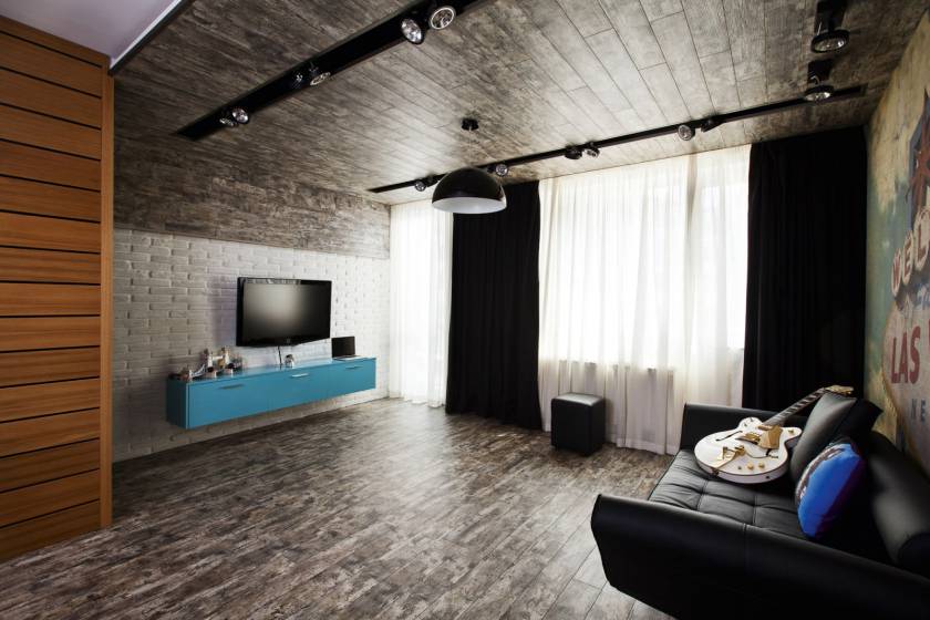 Акцентирование комнаты ламинатом добавит интерьеру роскоши и богатства. Лучше всего уделить внимание пространству за телевизором, диваном или камином, если он есть. Также можно выделить уголок, где по задумке будет располагаться зона отдыха. Кресла, журнальный столик в сочетании с благородной облицовкой ламинатом – беспроигрышный вариант.