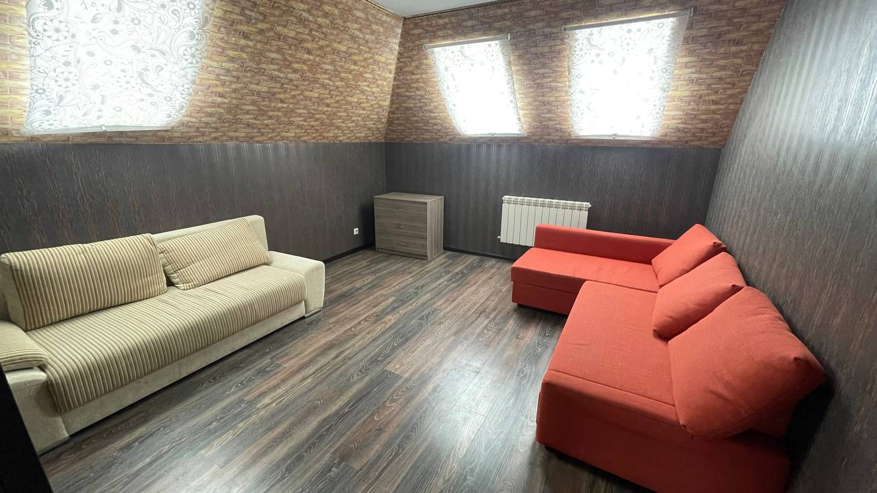 Коттедж ЛЕОН расположен в Минском районе, в 7 км от столицы, представляет собой 3 уровневый коттедж, рассчитанный на комфортное размещение 20 гостей. Коттедж в современном стиле оборудован необходимыми удобствами, в числе которых 4 спальные комнаты возможно размещение 20 гостей на ночь,ванная комната, 3 санузла , кухня с бытовой техникой, спутниковое телевидение. Особым удовольствием для гостей станет отдых на террасе, качелях, вы сможете пообщаться с близкими, подышать свежим воздухом и насладиться красоток открывающего вида. На территории коттеджа под Минском находится также баня с бассейном — место, без которого многие туристы не представляют свой загородный досуг. Пока готовится баня, гости могут пожарить шашлыки на оборудованном мангале на территории коттеджа.