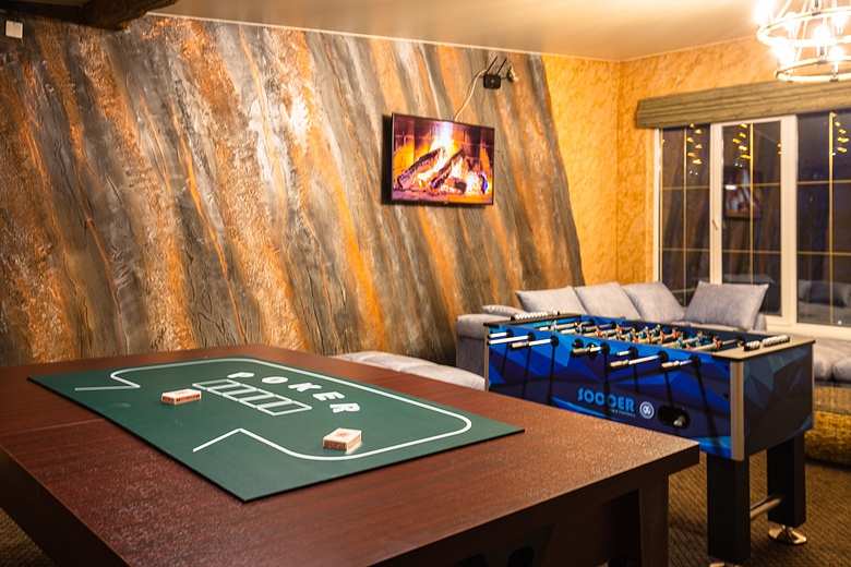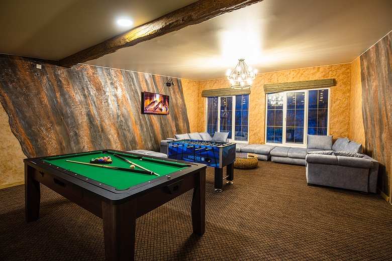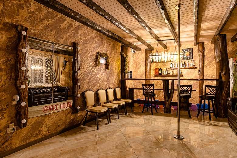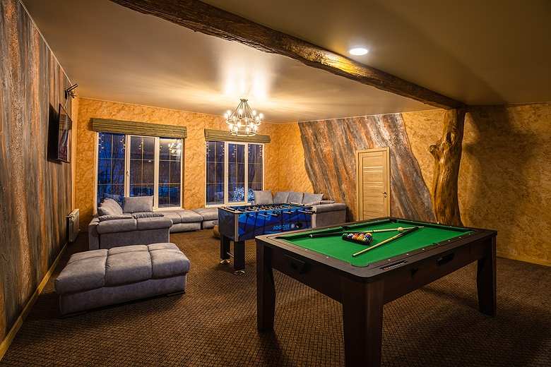 Дом состоит их четырех уровней, на двух из которых созданы все условия, чтобы провести любое мероприятие и хорошенько отдохнуть. Для взрослых мероприятий оборудован стриптиз-зал, танцевальный зал с лазерным шоу, дым-машиной, микшером, русским премиум- бильярдом (12 фут), «американкой» (pool, 9 фут), настольным теннисом, beer-pong и караоке с двумя микрофонами.