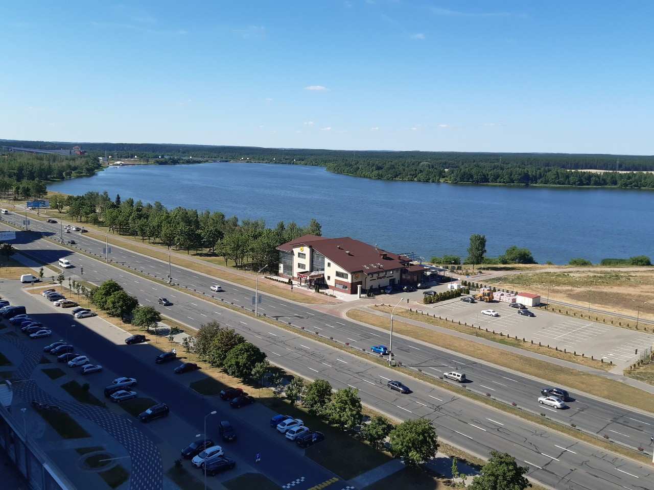 С видим на озеро в зеленой зоне