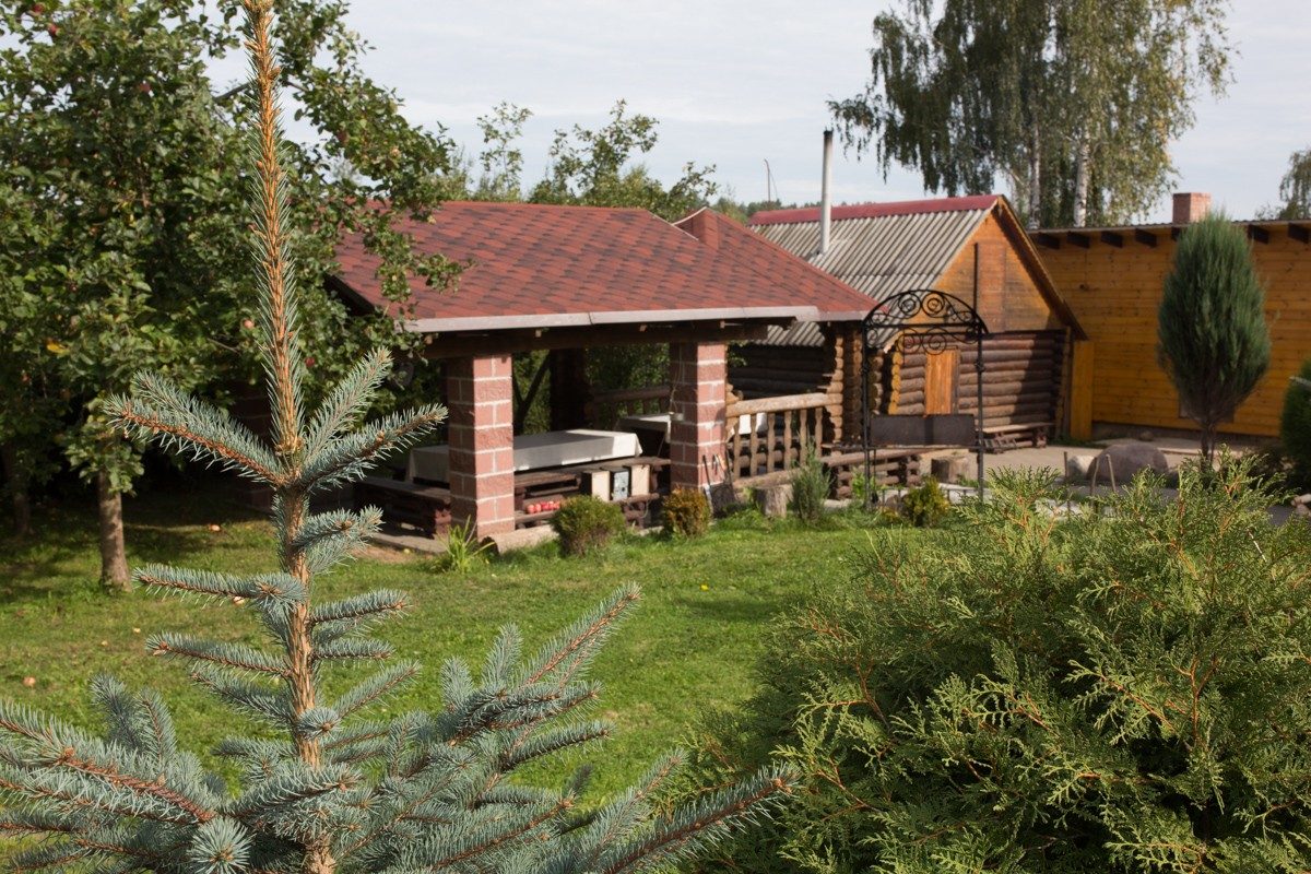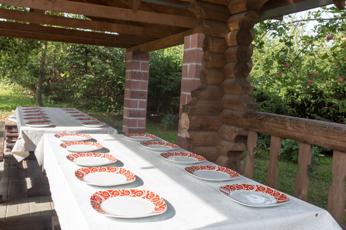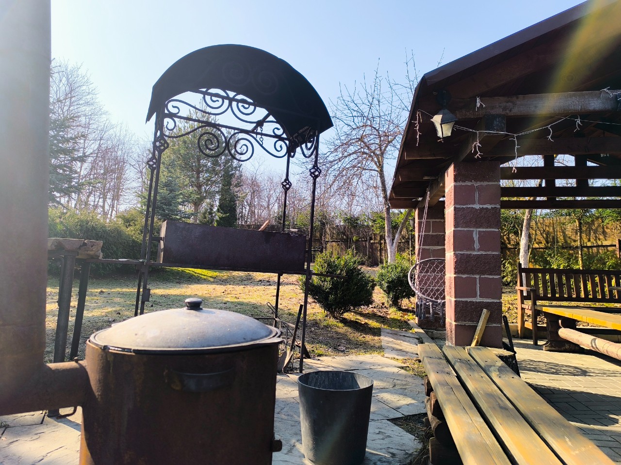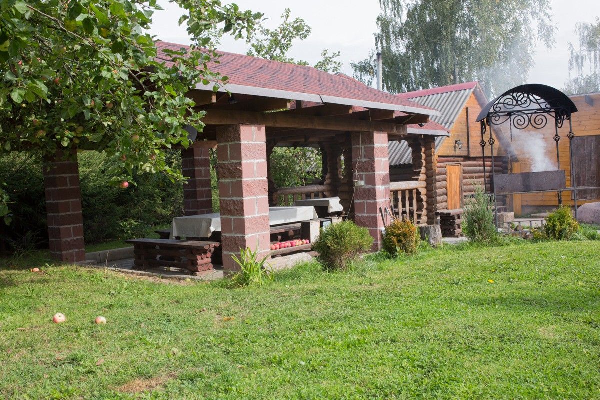 Отлично отдохнуть в коттедже «Узгорье» можно и во дворе, ведь там есть место для шашлыка, огромный кованый мангал, сухие березовые дрова в придачу, зеленая территория, беседки со столами из массива дерева.