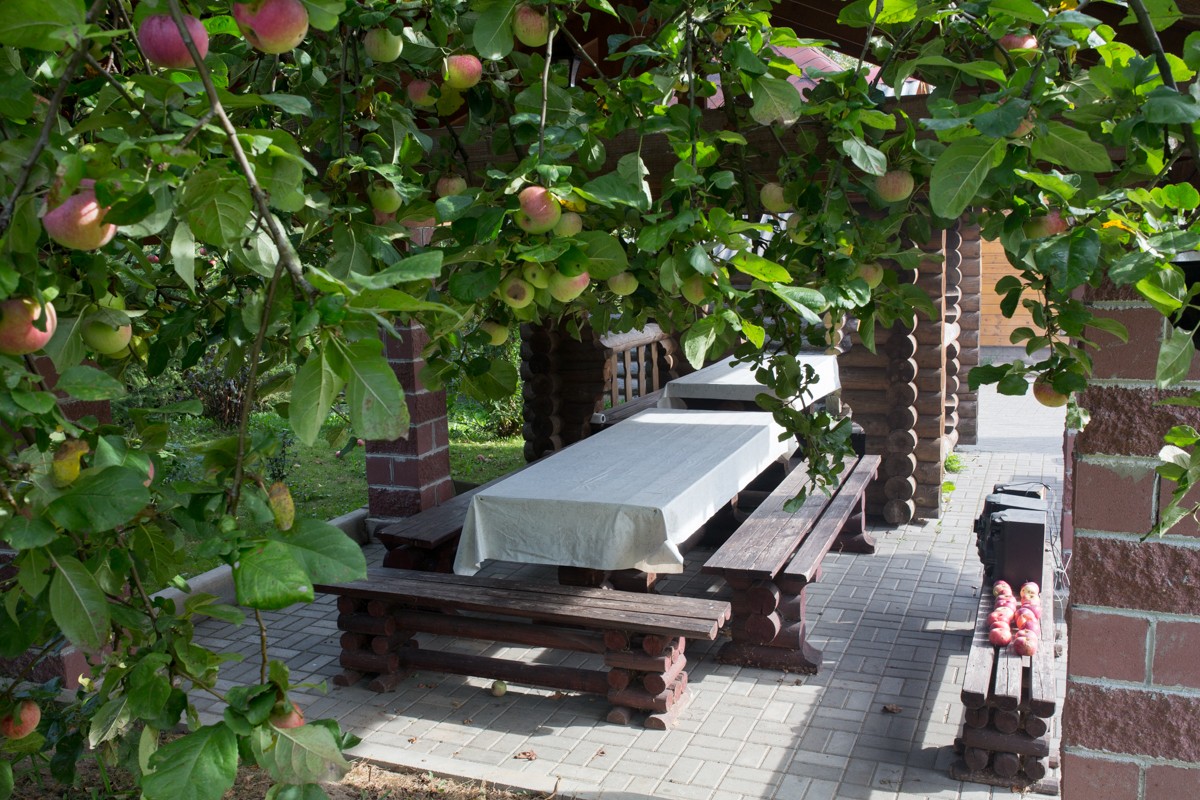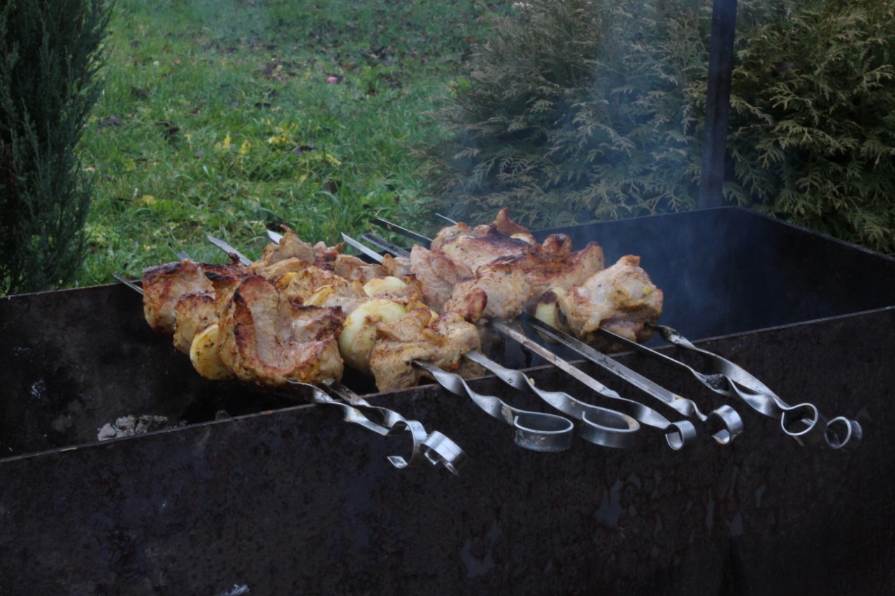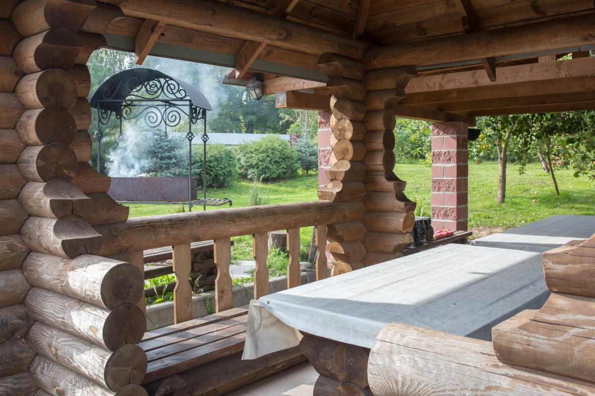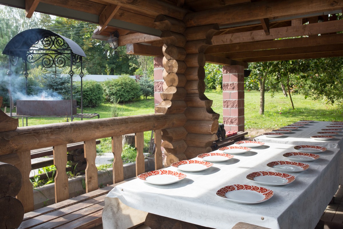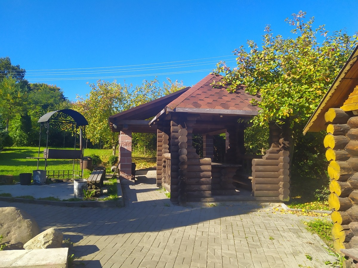Отлично отдохнуть в коттедже «Узгорье» можно и во дворе, ведь там есть место для шашлыка, огромный кованый мангал, сухие березовые дрова в придачу, зеленая территория, беседки со столами из массива дерева.