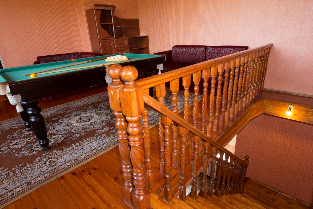 Пять уютных комнат с современной обстановкой и новой мебелью расположены на втором этаже. Там же можно сыграть в русский бильярд.