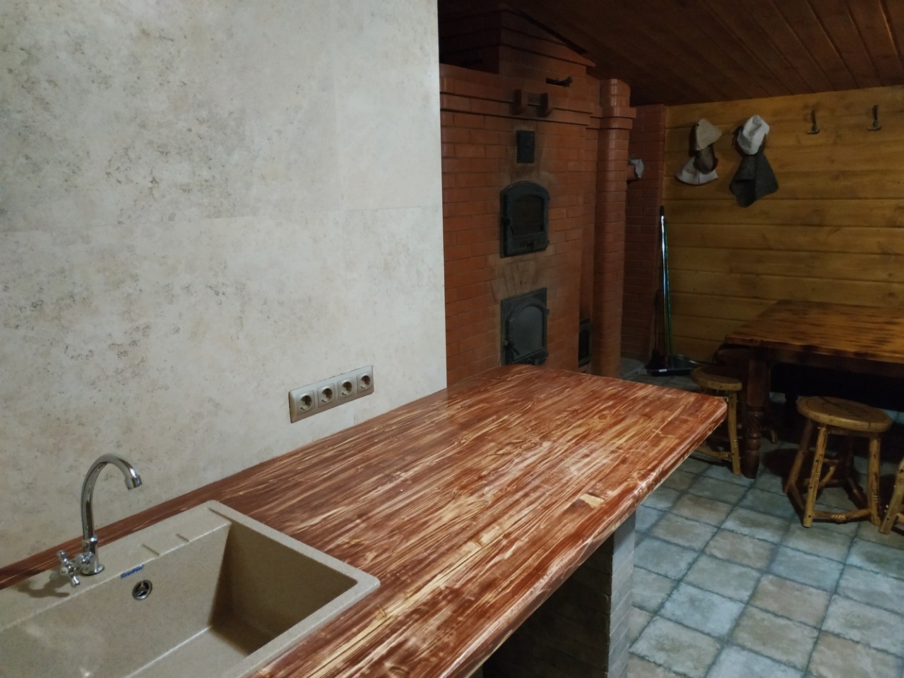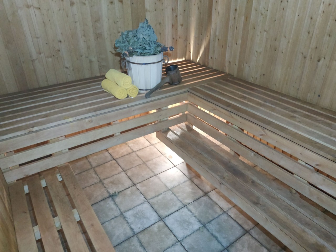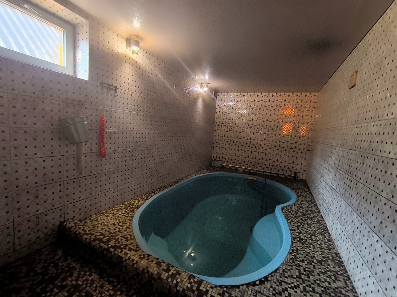 Для истинных ценителей целебного пара, есть возможность попариться в новой бане, с печкой-каменкой на дровах, загруженной несколькими сортами банных камней. Парилка отделана лиственницей и ольхой, можно принять теплый душ, окунуться в бассейн 12 м3. С друзьями насладиться посиделками за огромным столом из массива напротив действующей камино-печи, SMART-TV. Коттедж и баню (сауну) можно снять, как вместе, так и раздельно. В стоимость входит пользование мангалом, дровами, беседками и т.д.