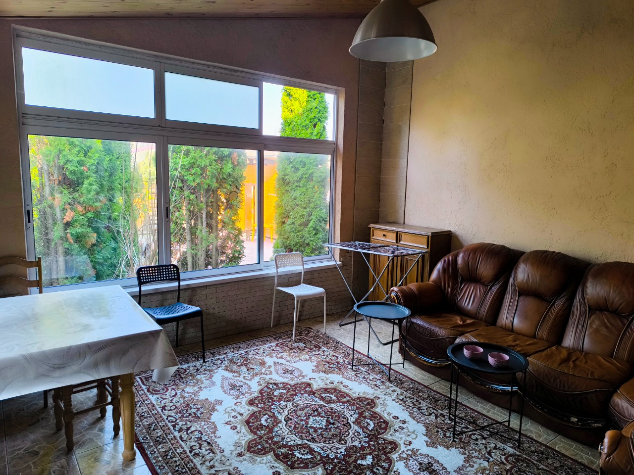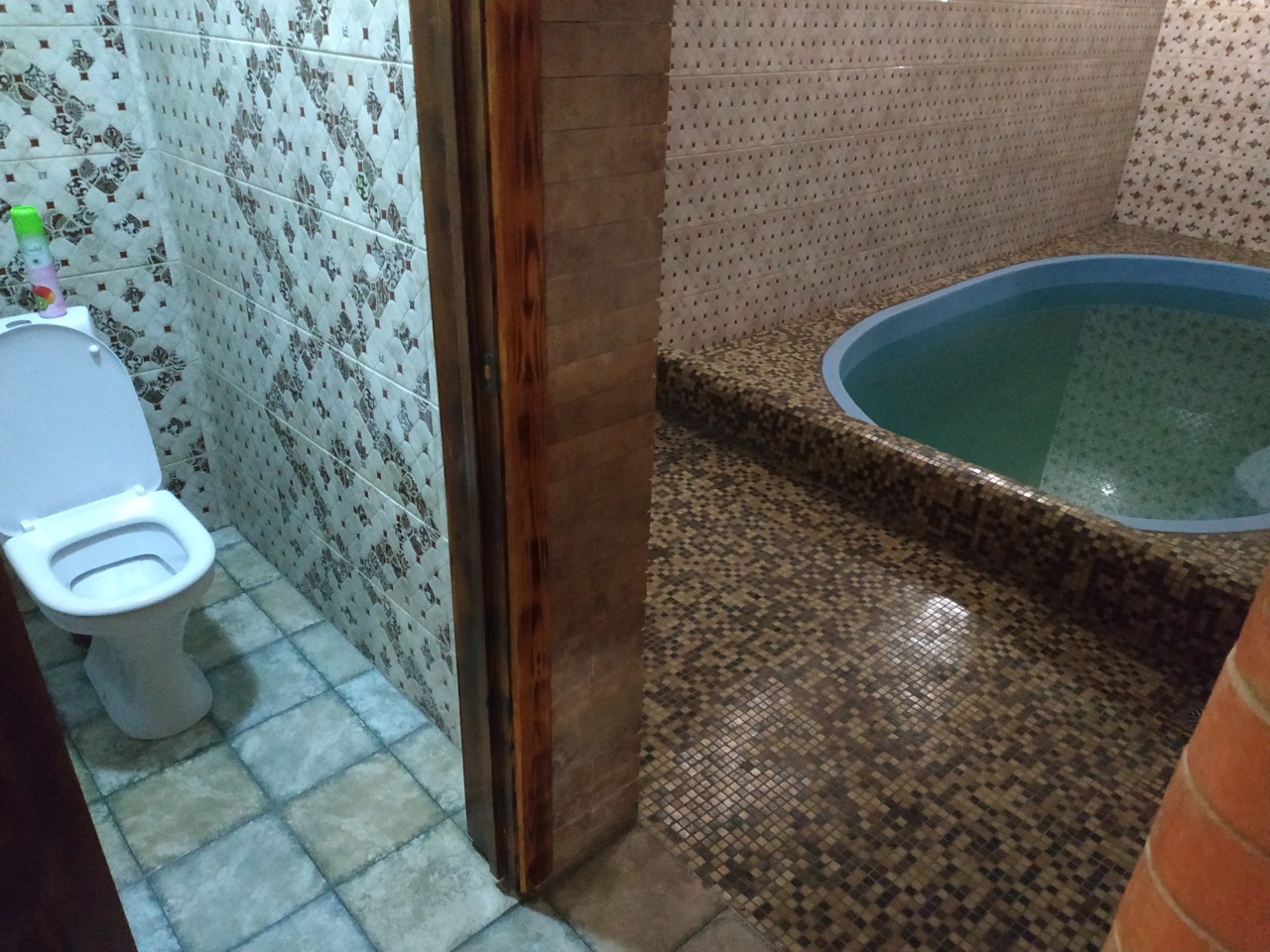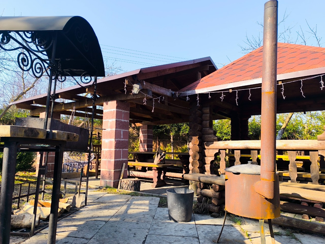 Имеется душевая кабина, холодная и горячая вода, санузел в доме и уличный возле беседок. Имеется шикарная веранда с диванчиками где можно курить.