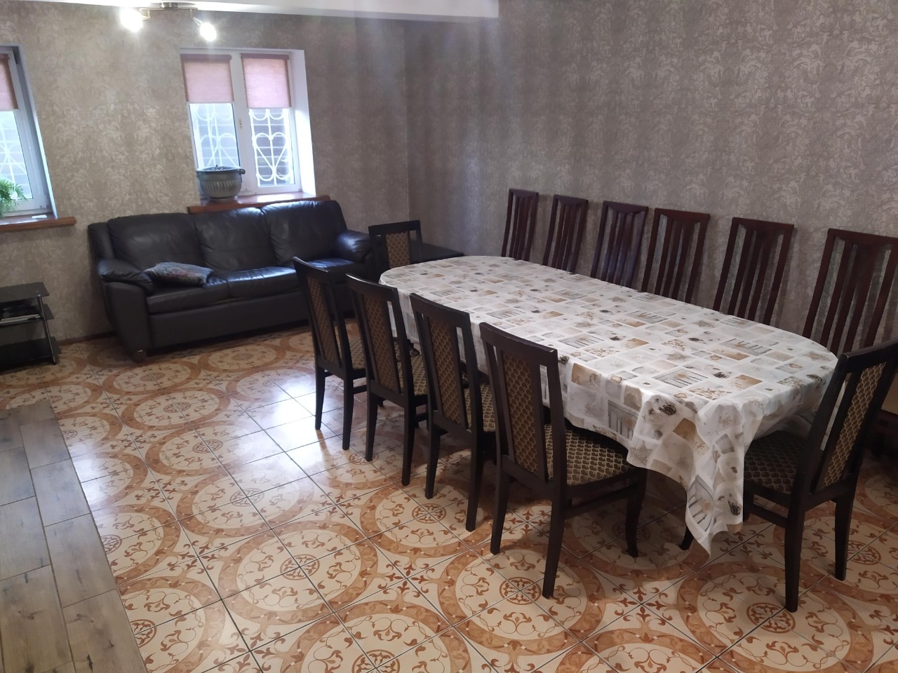 На первом этаже Вас ждет потрясающий банкетный зал, где чистый и теплый кафельный пол с подогревом снимет усталость Ваших ног. Здесь все, что нужно современной хозяйке: большой стол из массива вместимость зала до 20-22 персон), новая современная кухня, микроволновая печь, духовой шкаф, газовая плита, посудомоечная машина, холодильник, в углу камин из камня, огромная плазма, Караоке, спутниковое телевидение, диски, музыкальный центр, большой угловой кожаный диван. В вашем распоряжении полный набор посуды для сервировки стола и приготовления пищи.