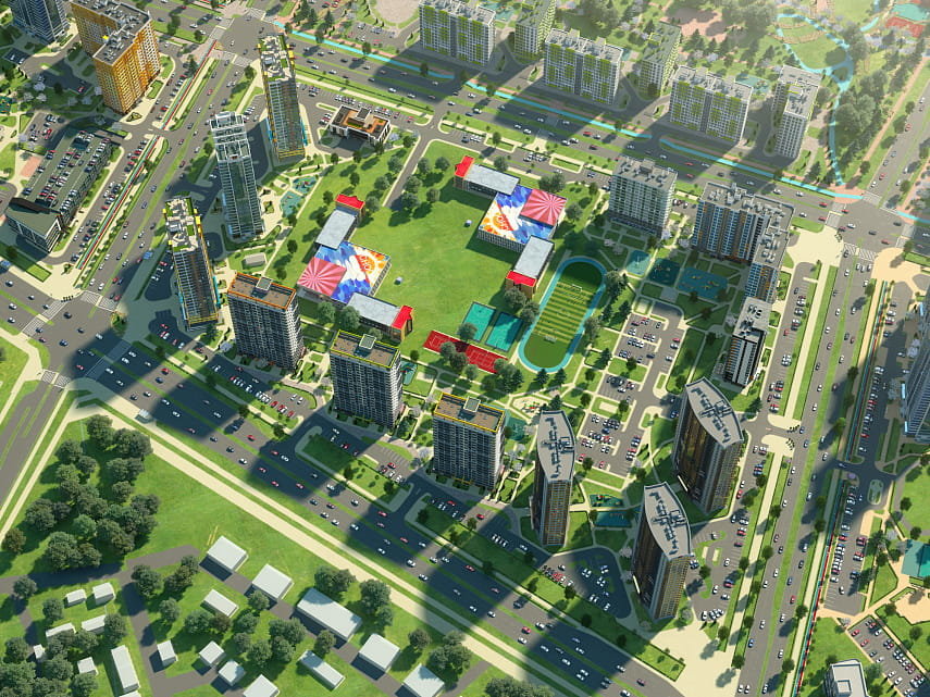 Рядом раскинется парк со скульптурами, аттракционами, фонтанами. Отличное место для занятий спортом, выгула домашних питомцев, пеших и велосипедных прогулок.