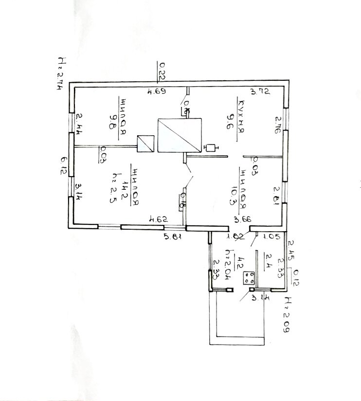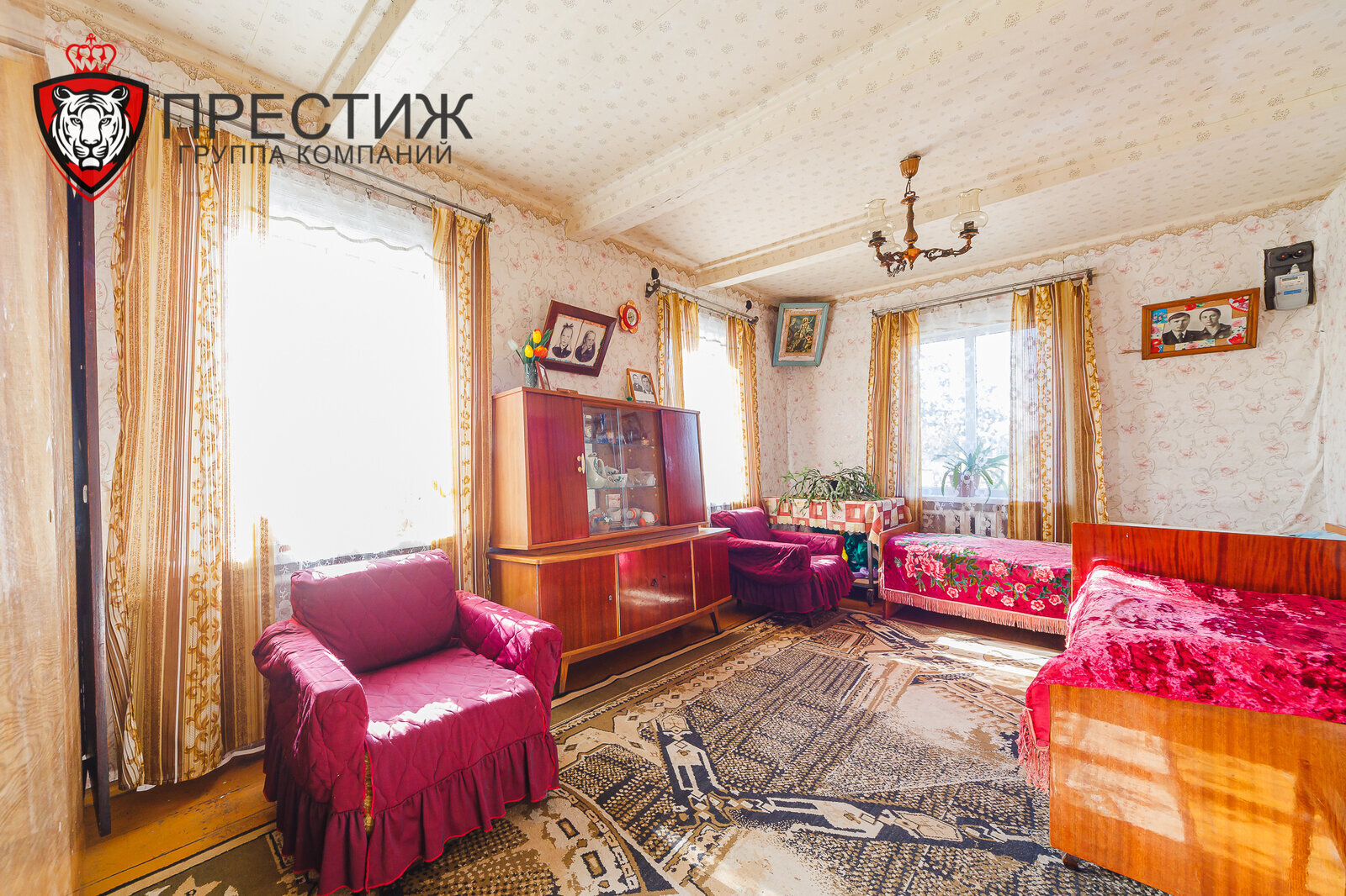Деревянный дом общей площадью 50.5 м2, жилая 34.3 м2, кухня - 9.6 м2 + веранда, летняя кухня, чердак.