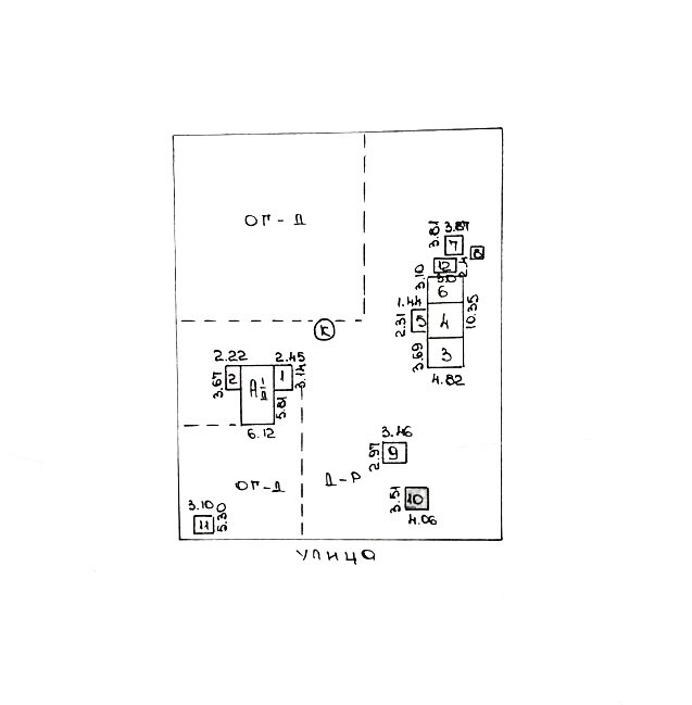 Большой участок прямоугольной формы - 40 соток. Огорожен забором: центральная часть из метало-профиля, остальное деревянный забор. На участке: колодец (погружной насос), сарай и прочие постройки. Хорошая плодородная земля, всегда обрабатывалась. За участком небольшая речка.