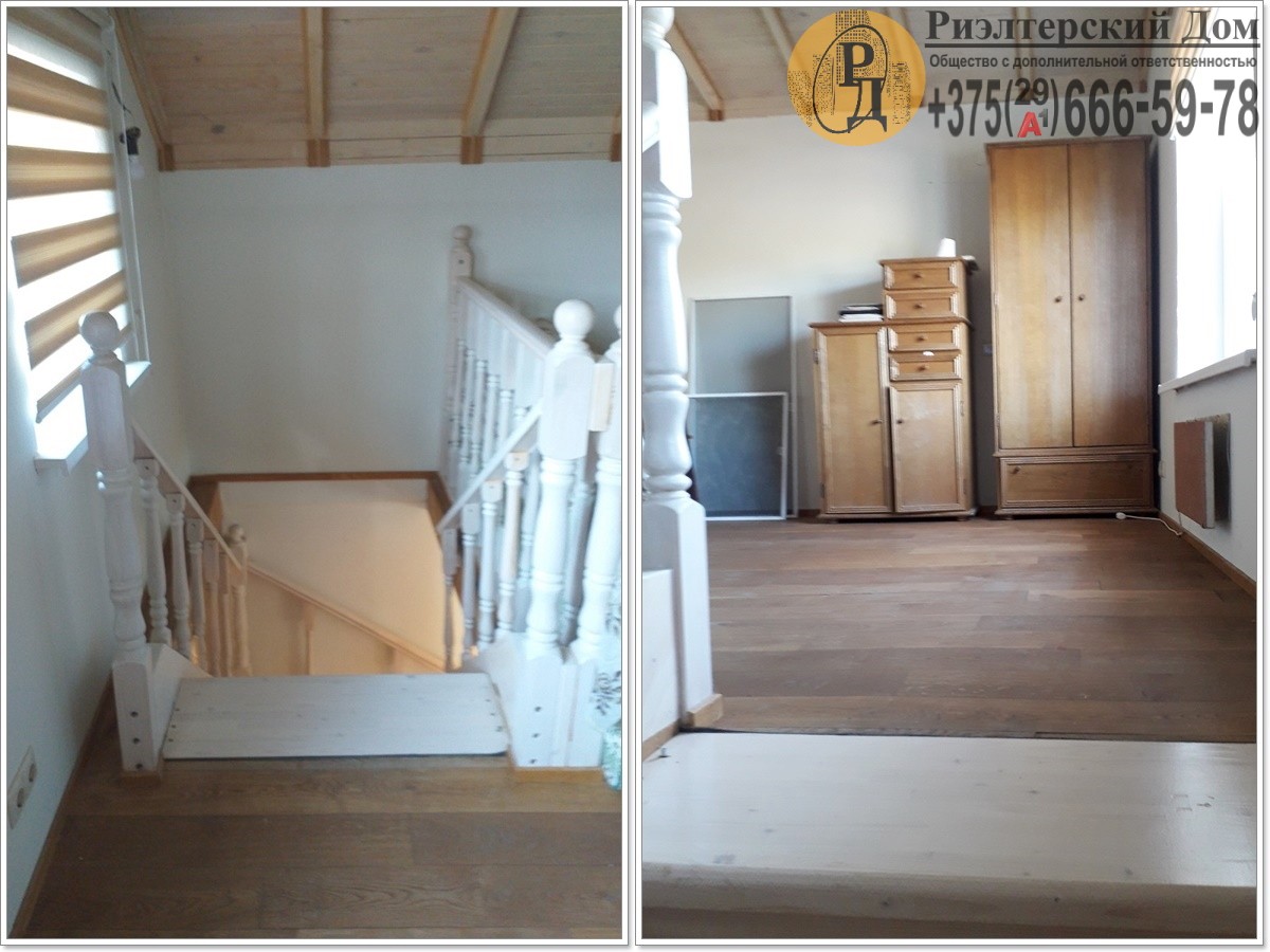 На втором - просторная комната и кухня. На кухне установлена варочная панель и духовой шкаф «Электролюкс», вытяжка, 2 газовых баллона. Пол паркетная доска.