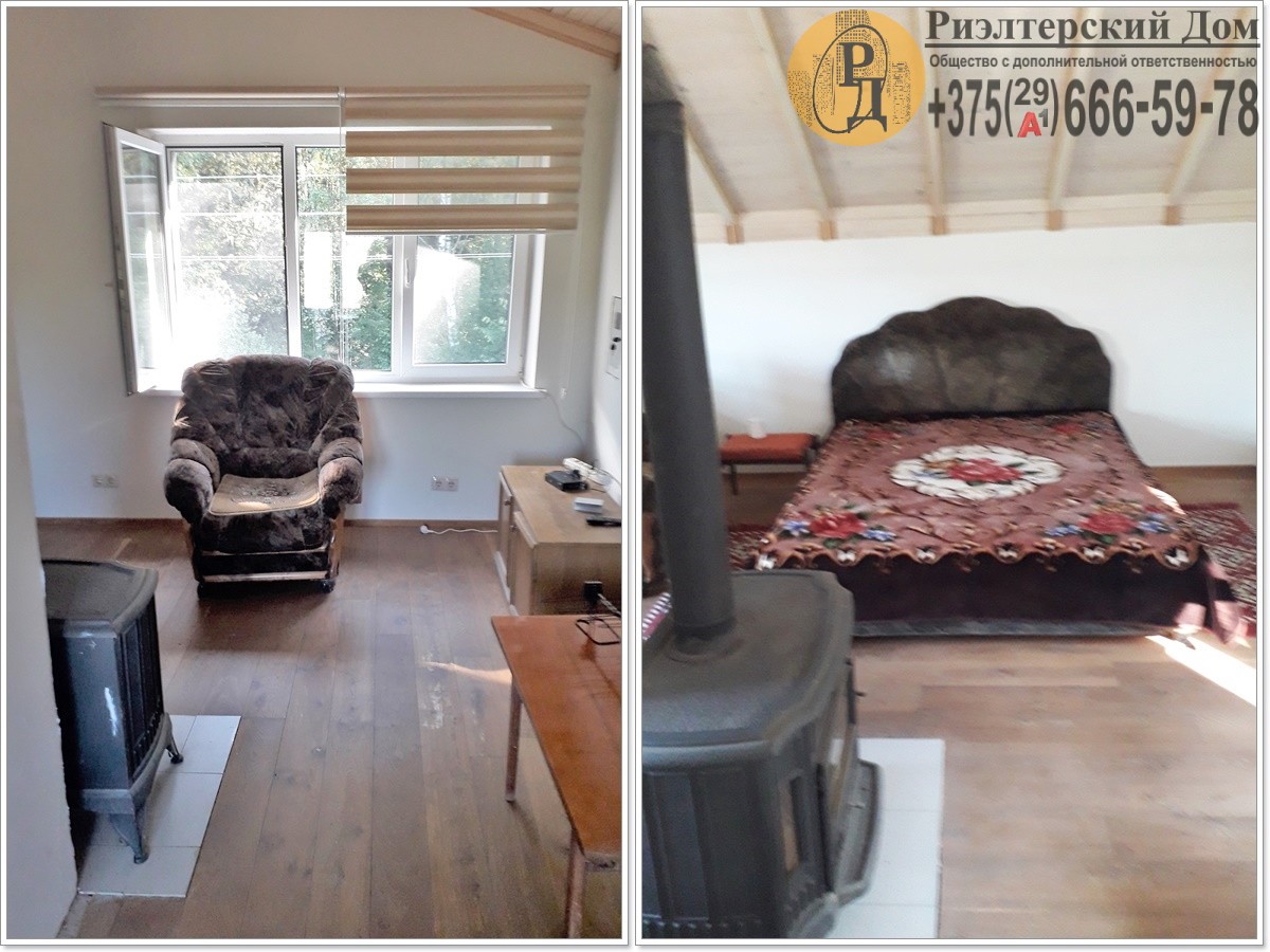 На третьем этаже большая комната. Отопление печное на втором уровне и каминное на третьем. Дополнительно в районе окон, а также в санкомнате установлены кварцевые обогреватели.