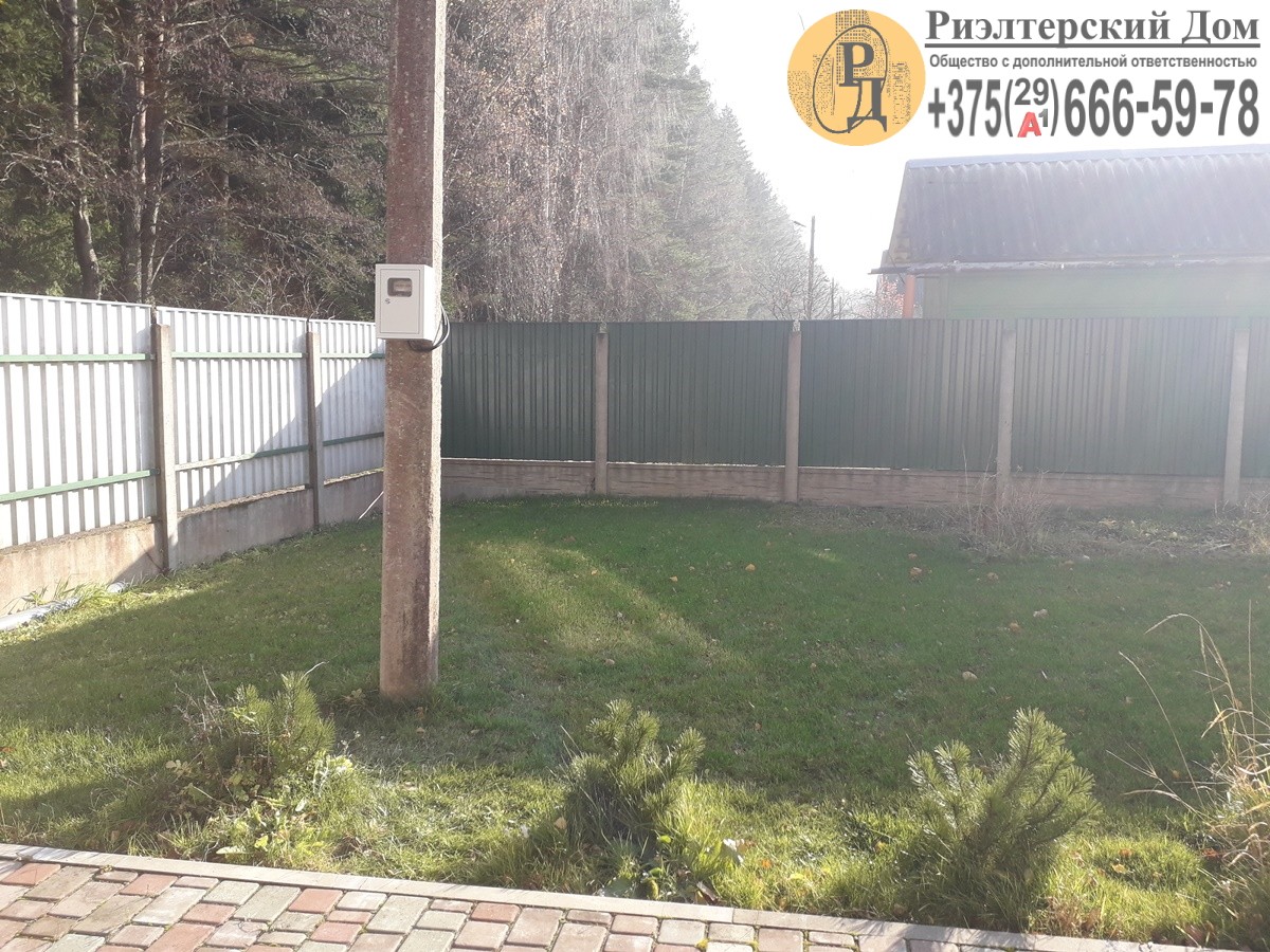 Участок 6 соток, квадратный, ровный, в частной собственности, огорожен забором из металлопрофиля. Красивый травяной газон. Есть большой парник. У центрального въезда на участок, а также вдоль дома уложена тротуарная плитка. Есть сарай. Сад включает 5 яблонь, 2 груши, 3 сливы, 2 вишни, виноград, крыжовник, малина.