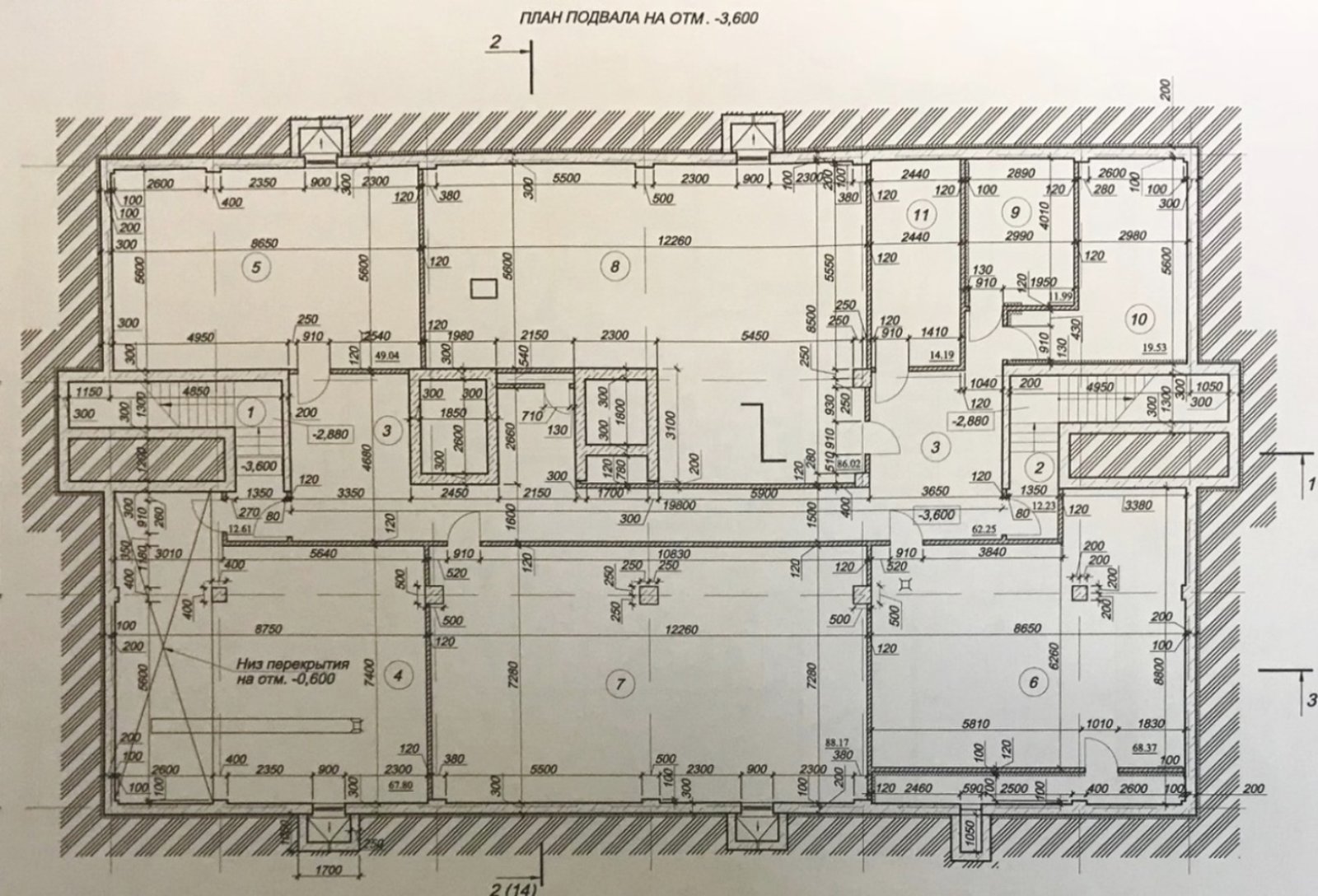 Подвальный этаж: насосные пожаротушения и ВК, теплопункт, венткамера, техподполья РУ 0,4 кВ и РУ-10 кВ, тех. помещения;