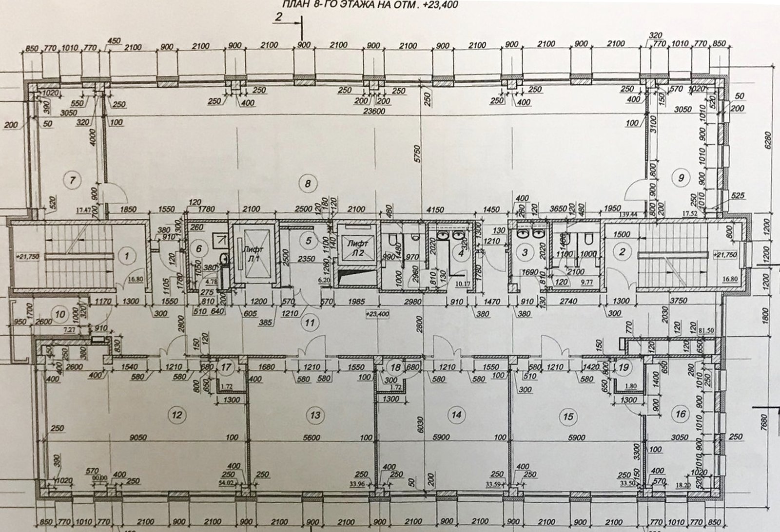 3 - 7 этажи: офисное помещение на 16 мест с 2-мя кабинетами руководителя, 2 офисных помещения на 8 мест с кабинетом руководителя каждое, с/у и др.;