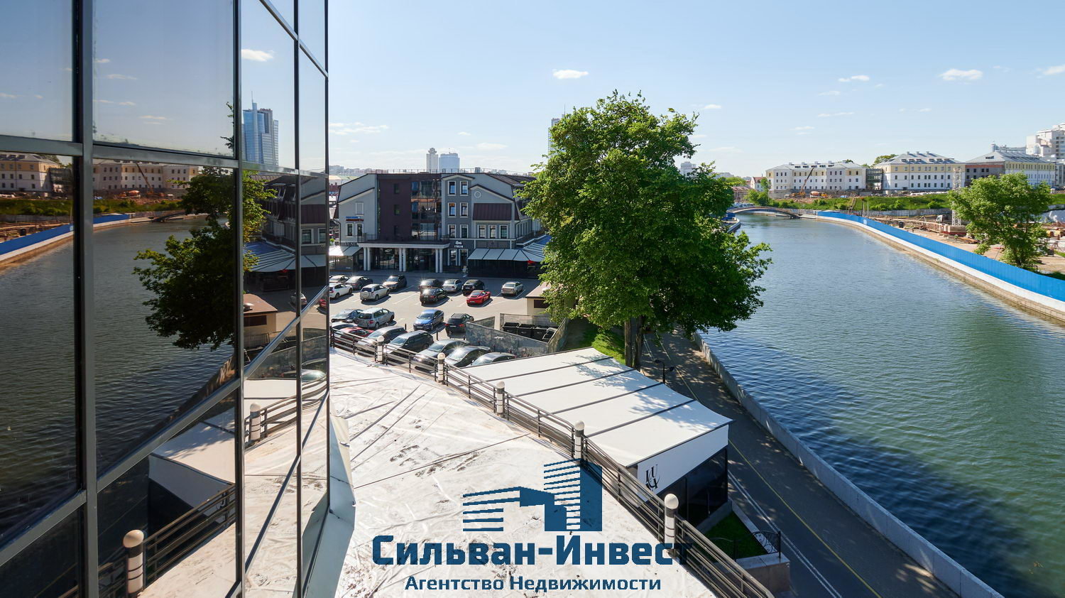Помещение расположено на 4-м этаже комплекса в историческом центре города на берегу реки «Свислочь»: