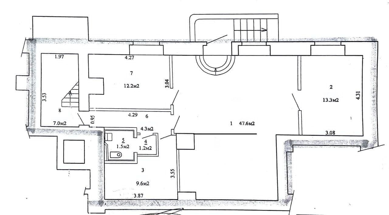Тип помещения: помещение с отдельным входом, состоящее из 4 комнат с просторным холлом. Расположено на цокольном этаже жилого дома.