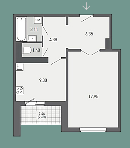 Площадь квартиры по СНБ 44,97 м2. Высота потолка 2м65см.