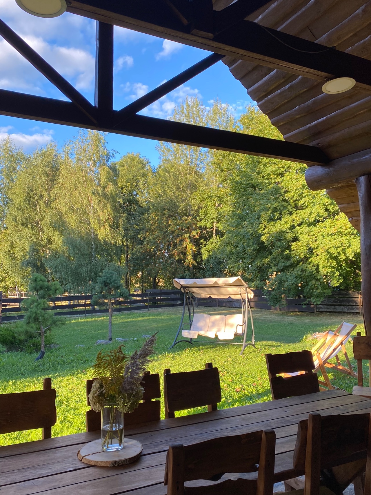 Рядом в усадьбе есть собственная конюшня на 10 лошадей, активно влюбленные в гостей англо-нубийские козы и милый ослик Джонни. К услугам гостей за дополнительную плату: баня на дровах, конные прогулки и обучение верховой езде, вкусные домашние завтраки или ужины с национальным колоритом.