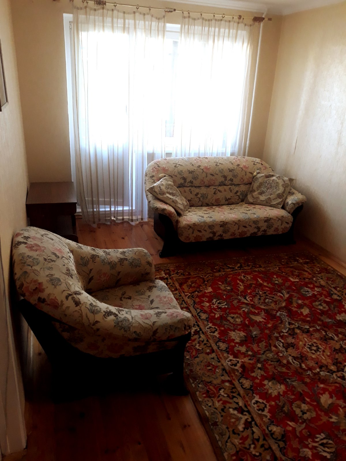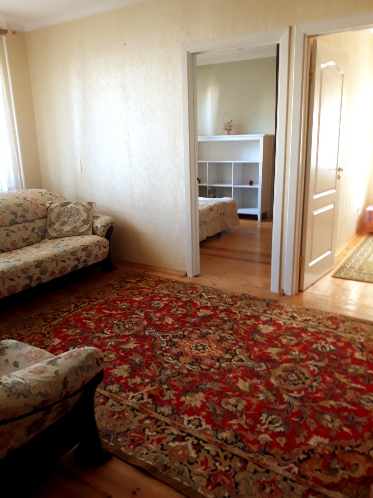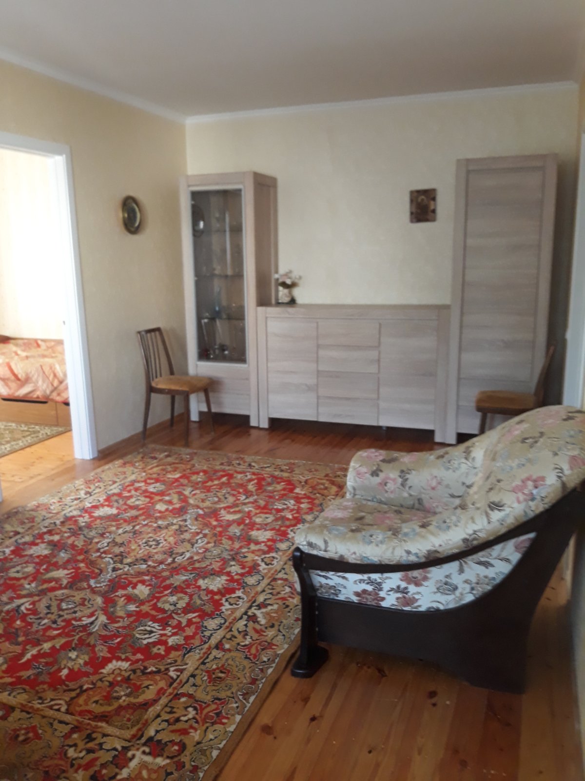 Была перепланировка, поэтому кухня большая, с зоной столовой. Сама кухня натуральное дерево. В гостиной новая мебель - куплена пару лет назад. Две небольшие спальни можно переоборудовать под себя.