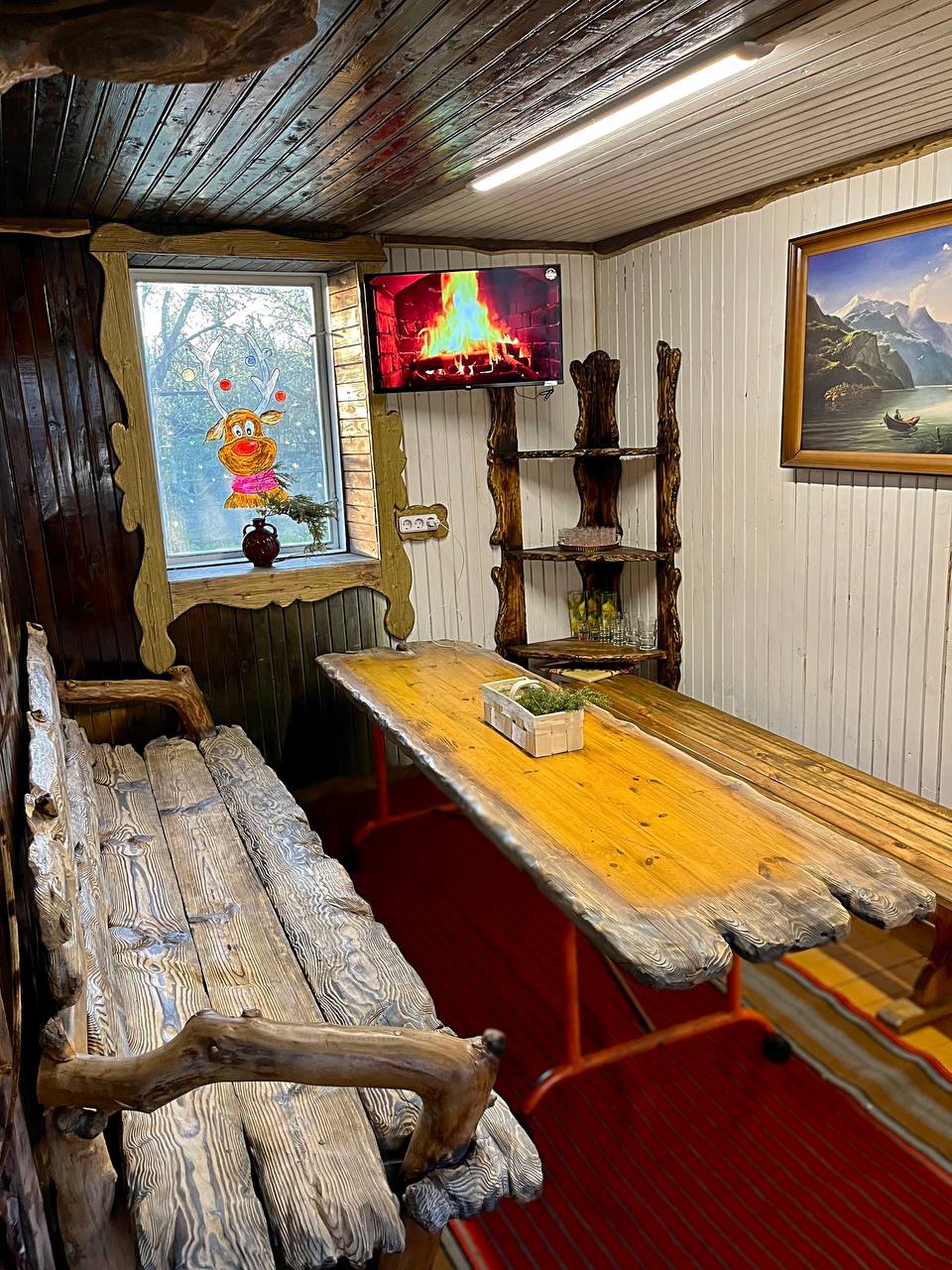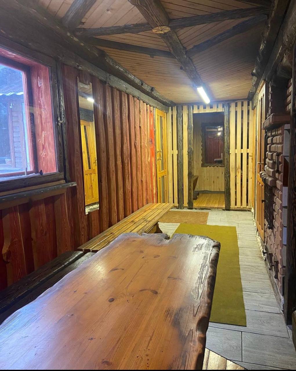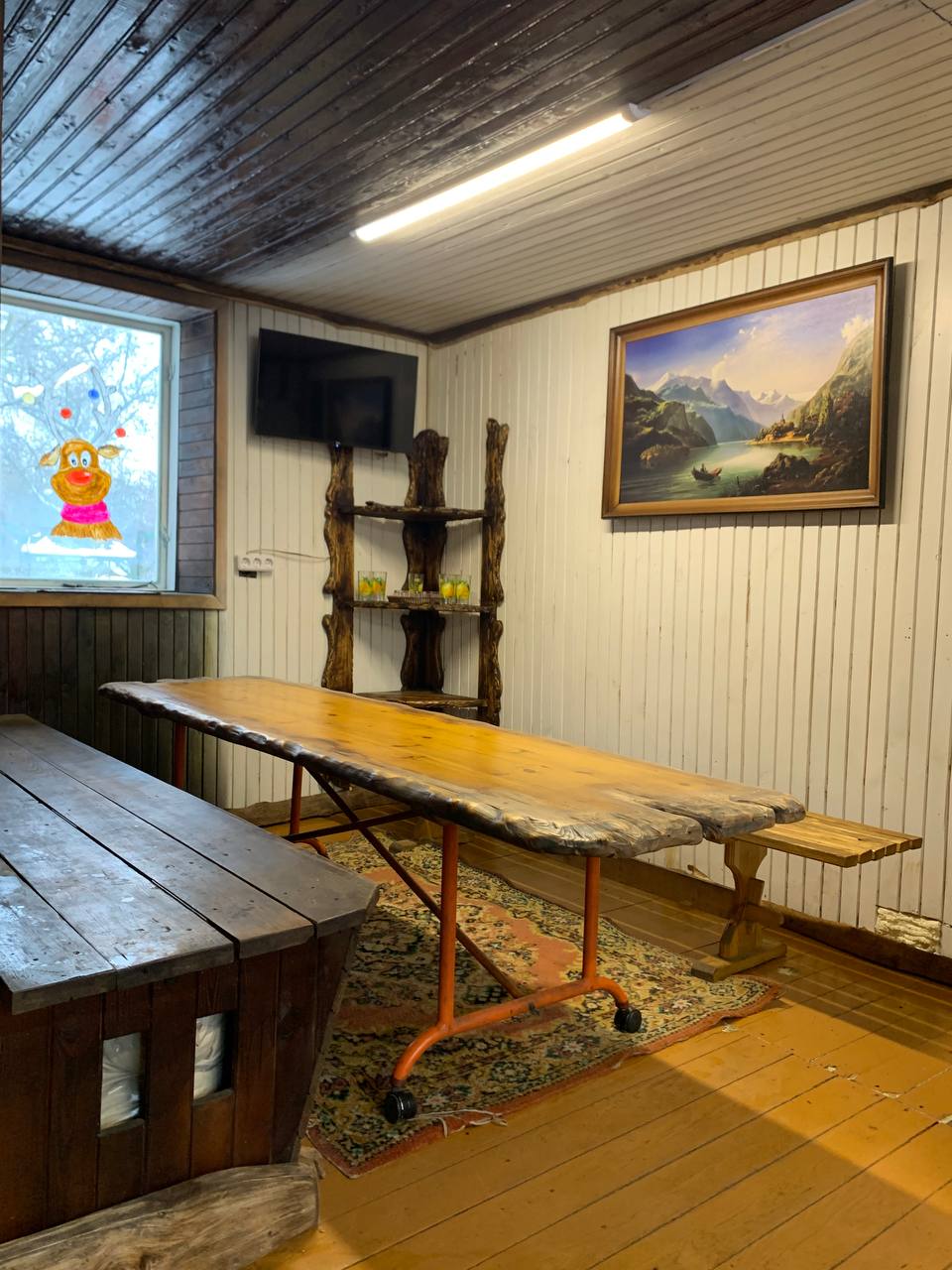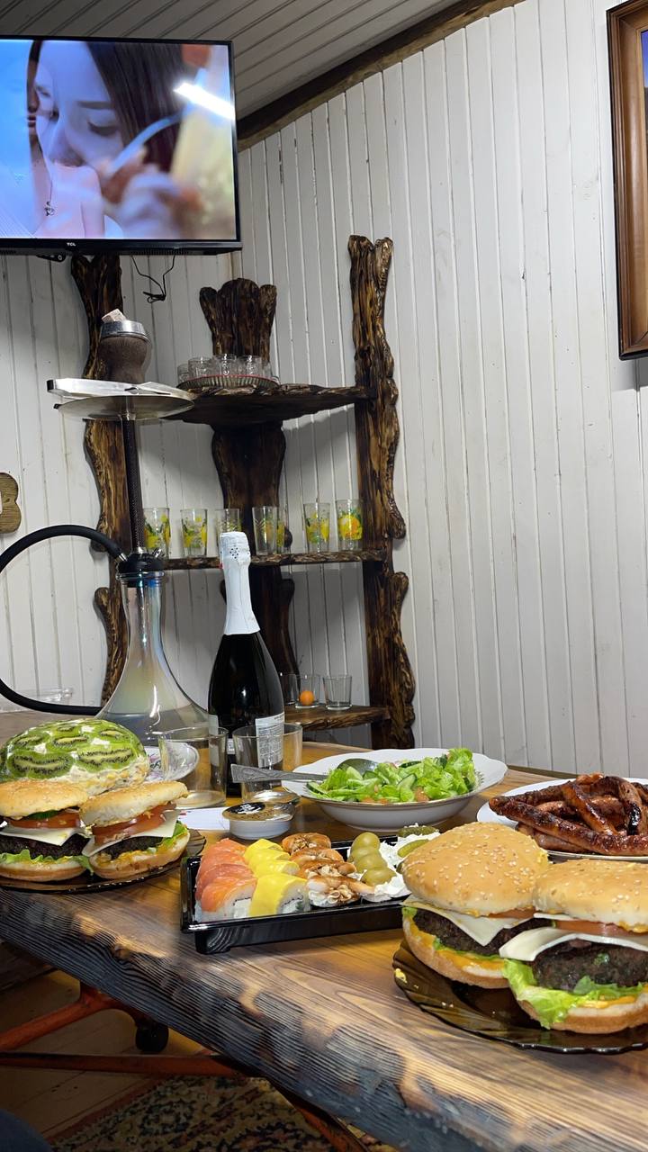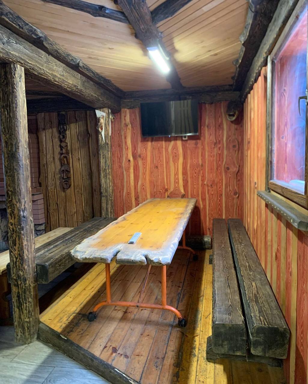 Наша просторная русская баня на дровах, с комнатой отдыха и с большим столом для застолья вместительностью до 10 человек, внутри есть открытый камин , который используется для приготовления мяса на углях или как красивый очаг открытого огня, который предаст тепло и уют в холодный зимний вечер вам и вашей компании.