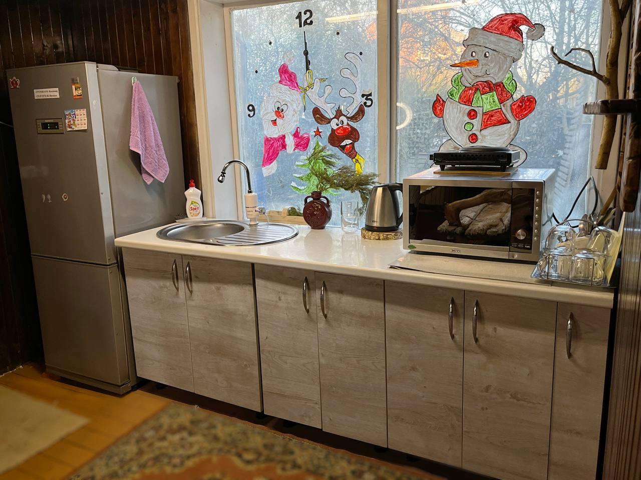 В доме есть большой стол и вся нужная мебель для застолье примерно вместительностью до 10 человек, (телевизор системой андроид, оборудованная кухня, она включает в себя: холодильник, микроволновая печь, электрическая плита, умывальник с центральной водой и конечна вся нужная посуда)