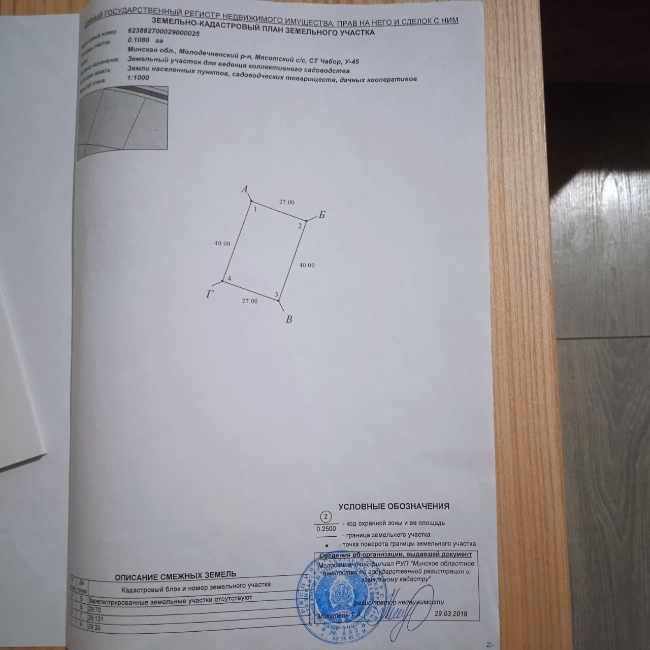 Участок приватизирован, находится в частной собственности. Ровный, есть плодоносящие яблони, молодые саженцы груш, абрикос и яблоня. Посажены туйки. Хоз.постройки для хранения инвентаря, бытовка и туалет. Не далеко от участка колодец, свет есть, счётчик на столбе. Участок номер 45, огорожен сеткой.