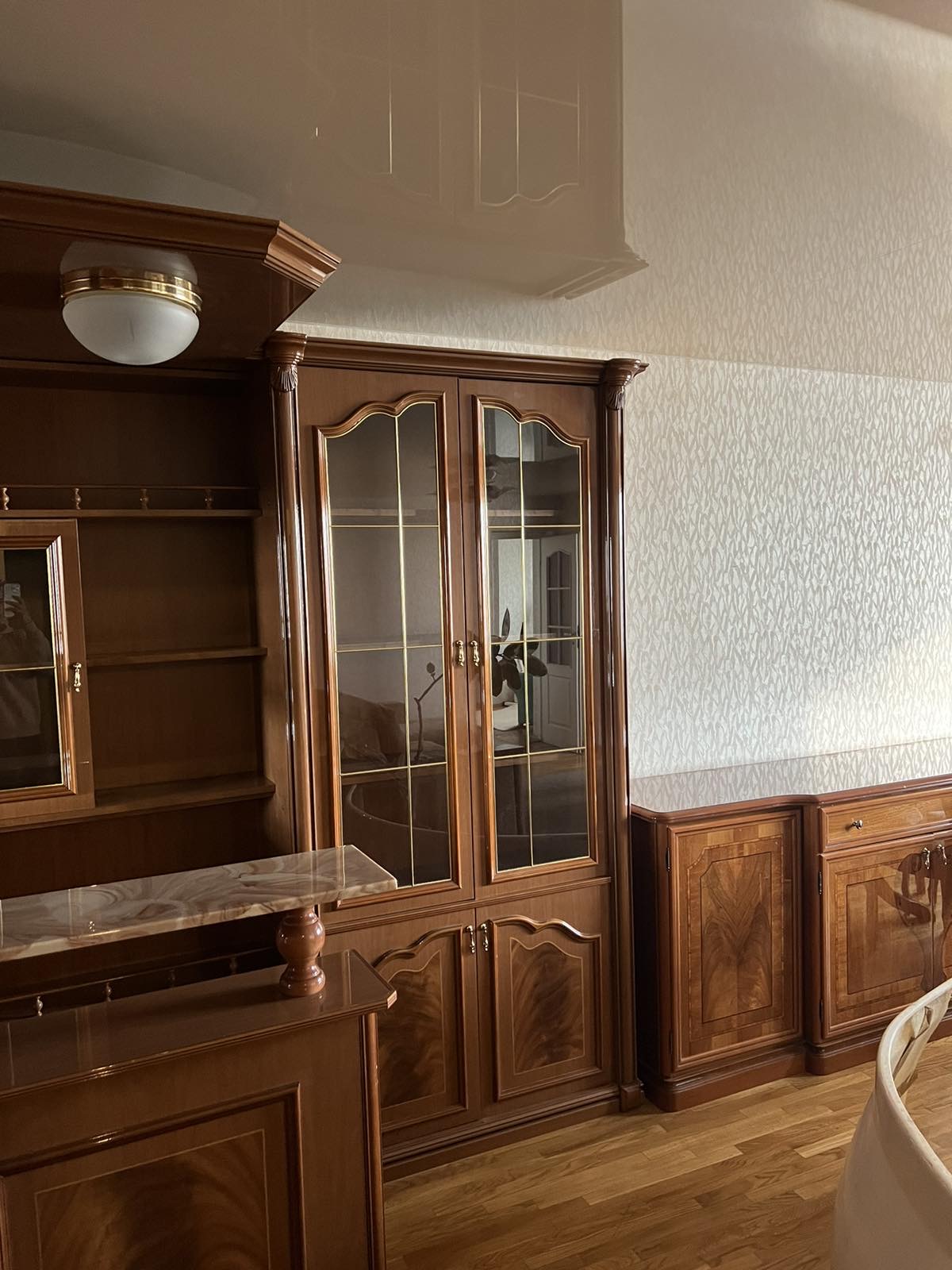 В квартире есть все необходимое для комфортного проживания. Встроенные шкафы, сейф, бытовая техника и качественная мебель. В квартире очень много мест для хранения вещей, как различных шкафов, комодов так и наличие гардеробной комнаты.