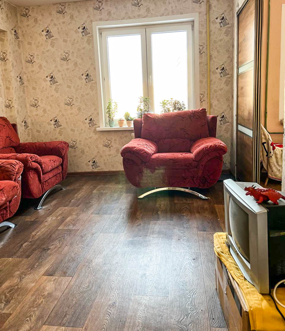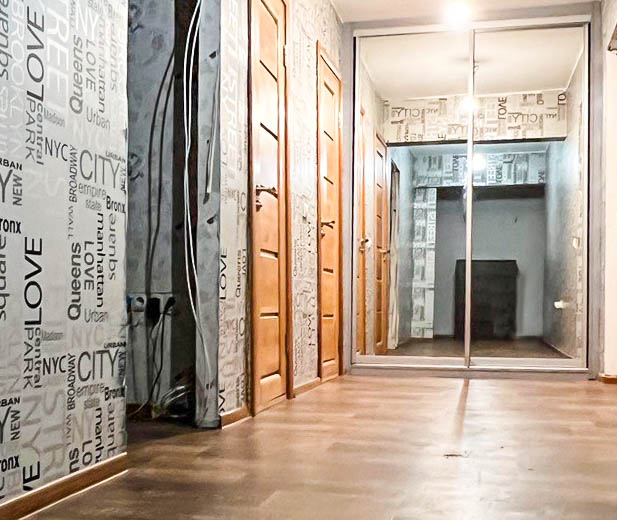 Свежий ремонт (местами не доделан). Во все квартире сделана двойная изоляция в полах и специальным составом выровнены полы и стены. В этой квартире очень просто освежить ремонт при необходимости. Все батареи с регулировкой. В квартире очень тепло. Много розеток. На полу линолеум Tarkett. Трубы полипропиленовые. Стеклопакеты во всех комнатах. Металическая входная дверь. Современный кафель в санузле, шкаф-купе в коридоре, встроенная кухня.