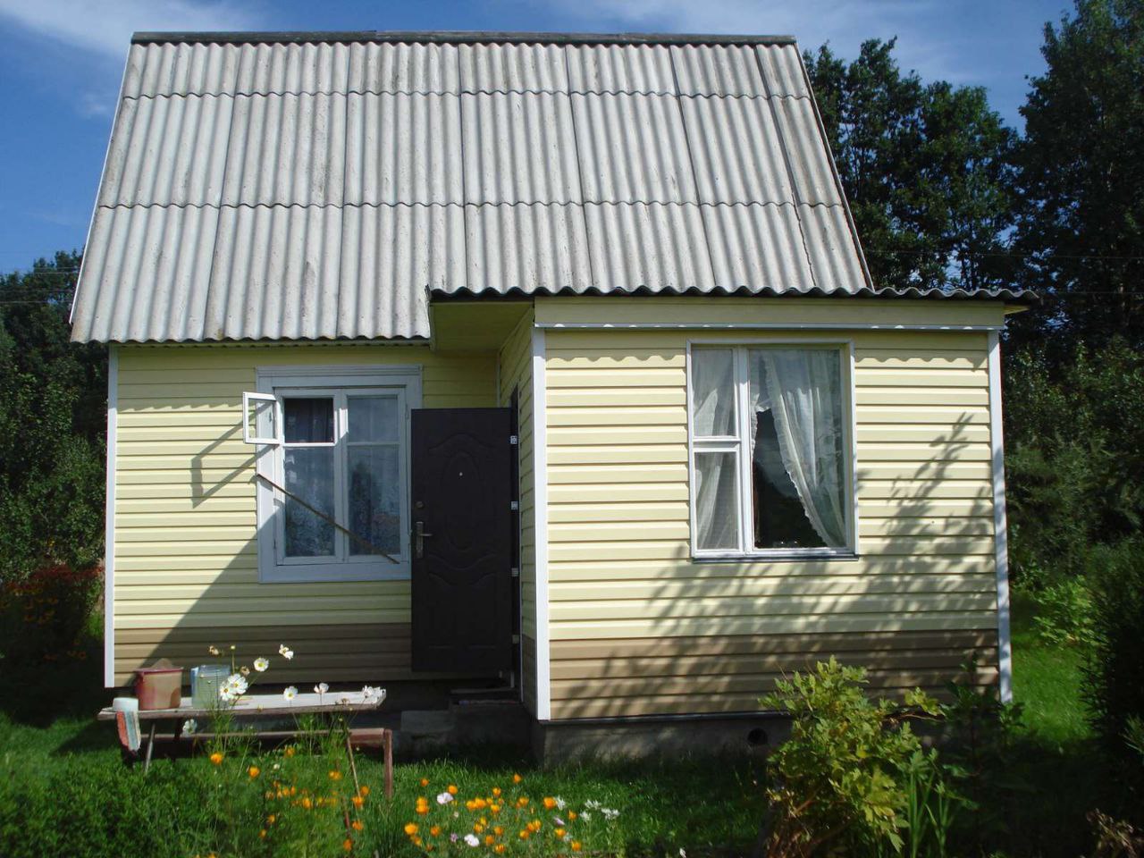 Общая площадь 43 кв.м., год постройки -2000; Сборно-щитовой, покрыт сайдингом,