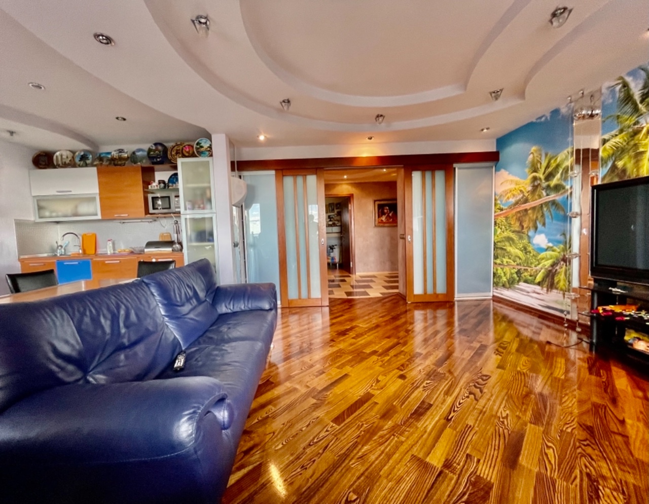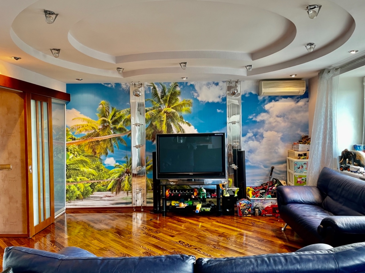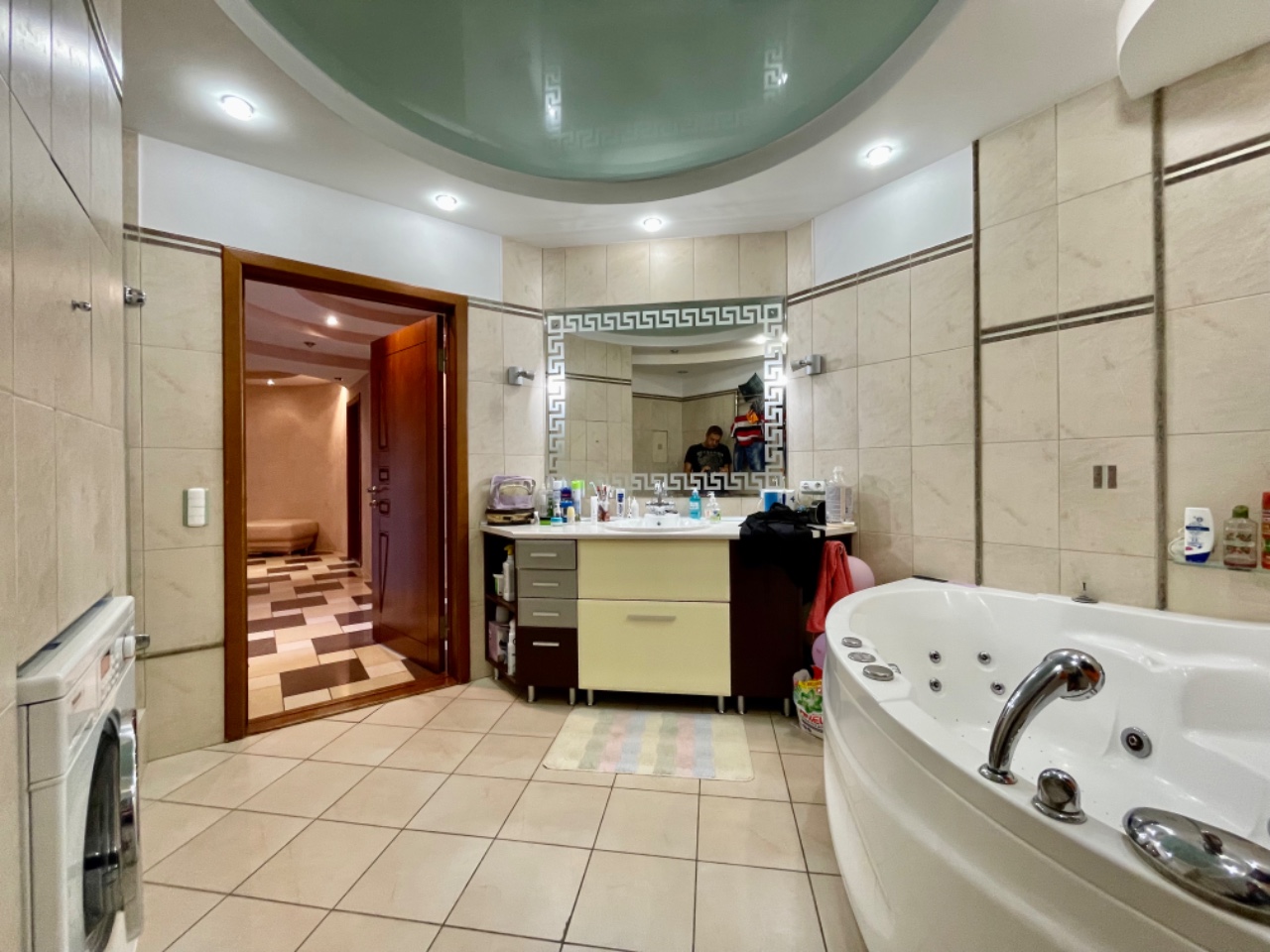 Квартира полностью обставлена качественной импортной мебелью: джакузи, 3 кожаных дивана, кровать 2*2 метра, большой невскрываемый и несгораемый встроенный в стену сейф, стиральная машина MILE с сушкой, три плазменных телевизора с большими экранами, эратор, подогревы полов, высококачественный фильтр для воды, работающий на основе обратного осмоса - чистит на молекулярном уровне, бойлер….