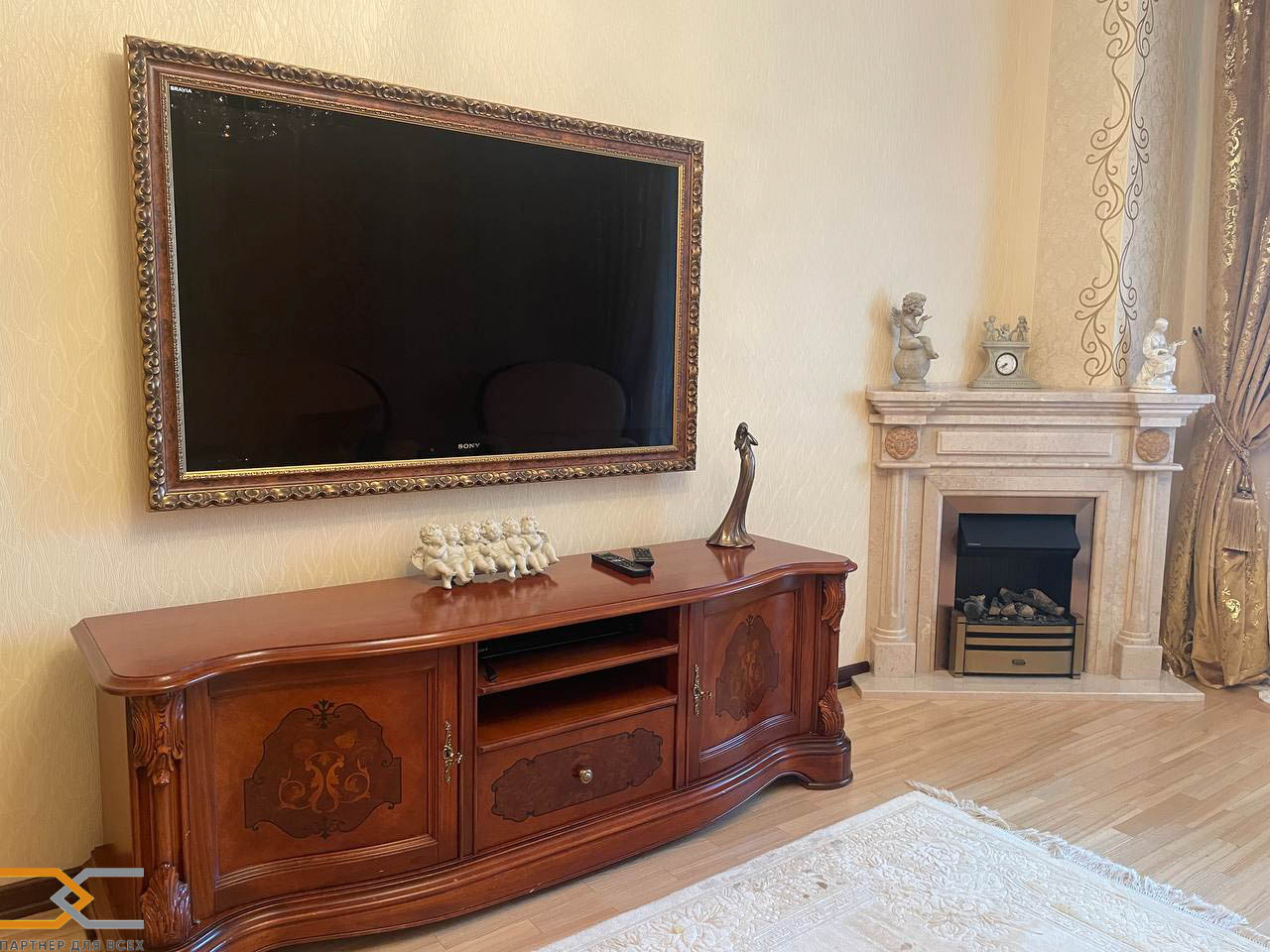 В квартире имеется вся необходимая техника для комфортного проживания, 2 раздельных санузла, в одном душевая кабина, в другом джакузи. Предусмотрена детская комната. В прихожей, санузлах, кухне, балконах и лоджиях подогрев полов. Имеется 2 лоджии и 2 балкона. Установлено видеонаблюдение на подъезде и на этажах, а также видеодомофон. Раз в месяц приходит сотрудник клининга для поддержания чистоты. Квартира укомплектована всей необходимой мебелью. Кухня разделена на 2 зоны: обеденную и рабочую. В обеденной зоне установлен телевизор и овальный стол. В гостиной есть электрокамин.
