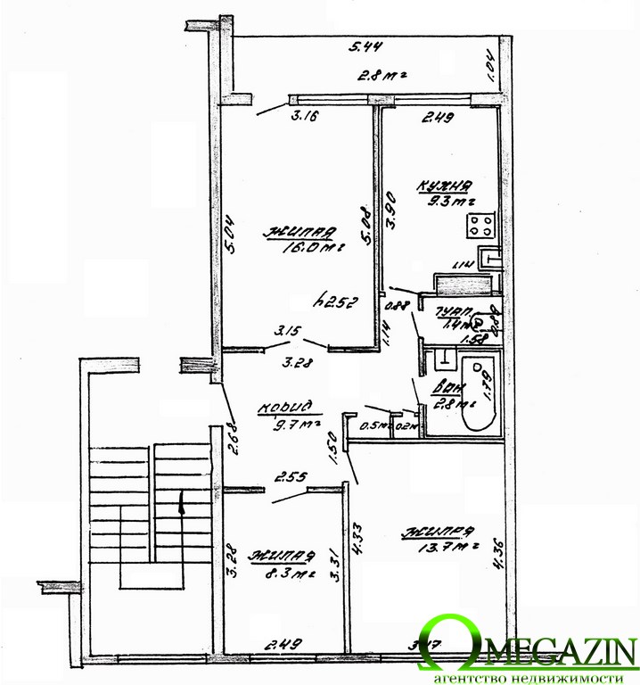 Кухня: 9,3 кв. м.