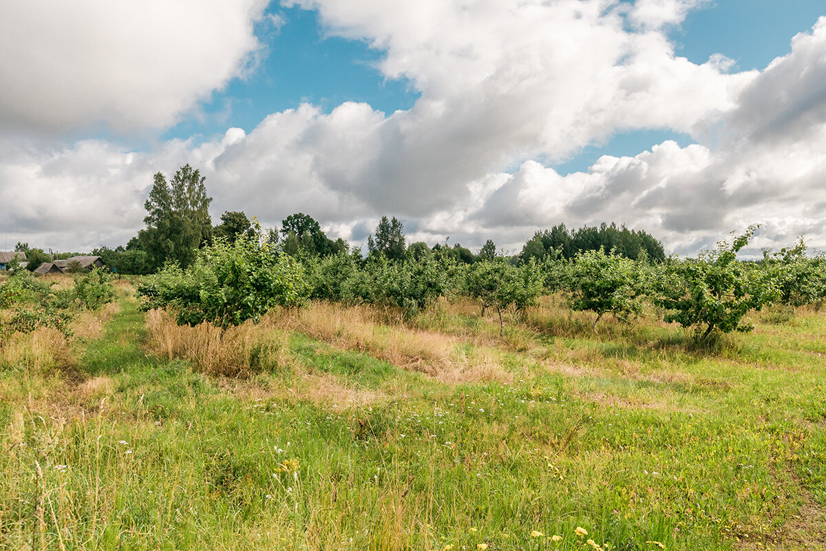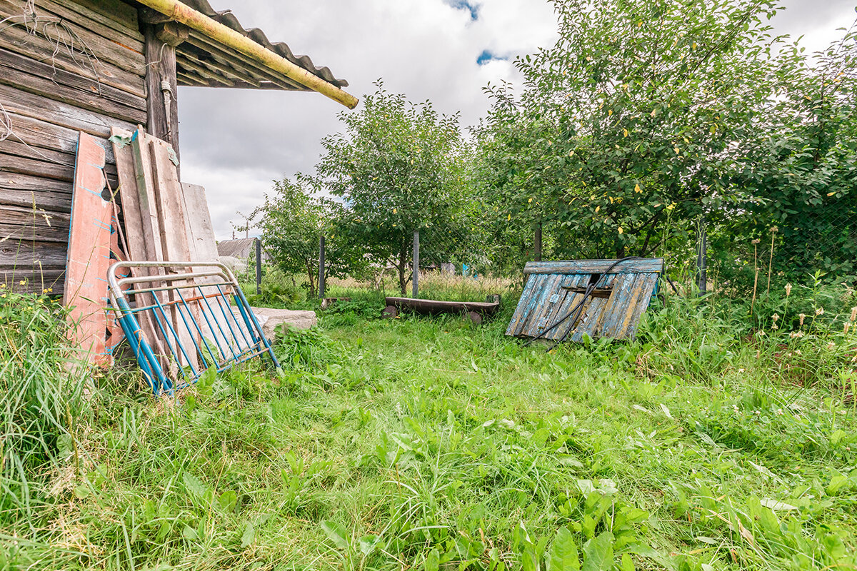 - Есть плодовые деревья и хозпостройки.