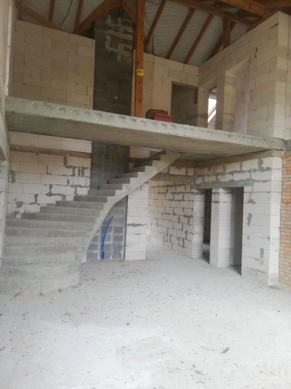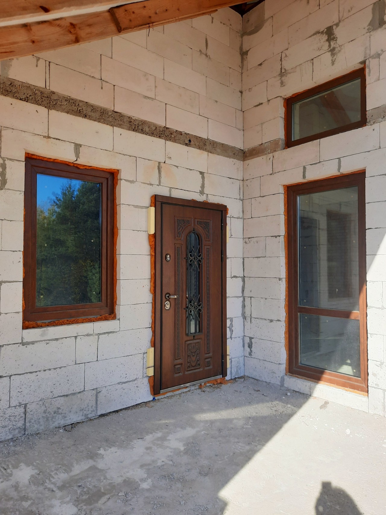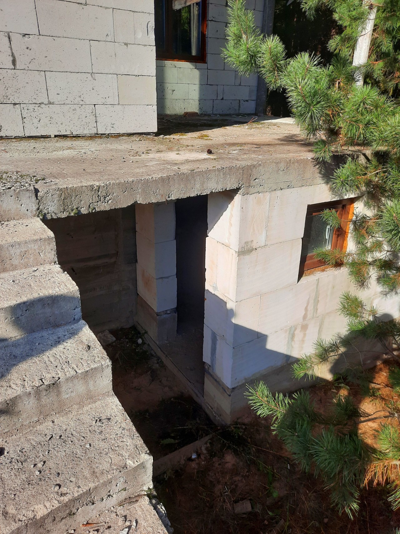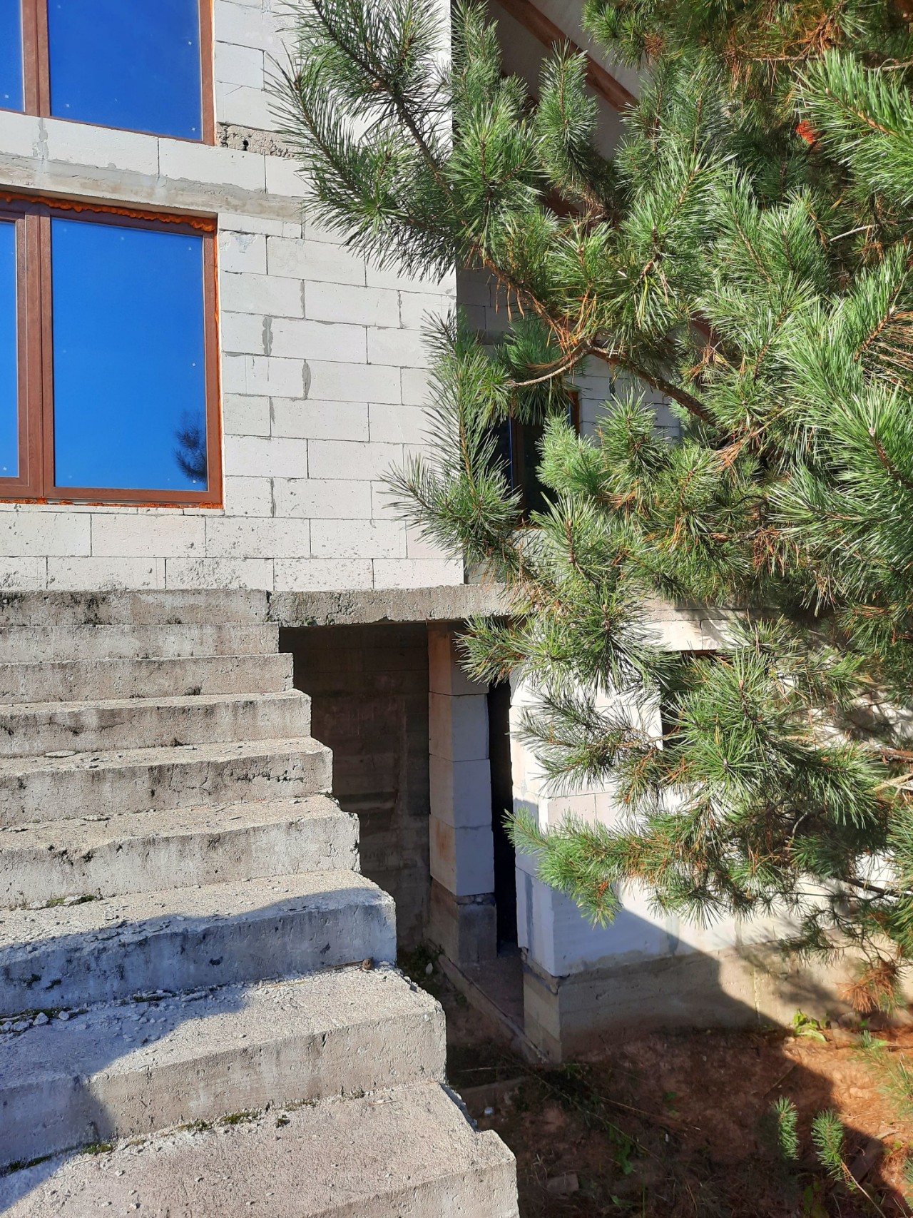 Фундамент осознанно делали до 2,3 метра высотой, чтобы из окон был шикарный вид. В доме нет цокольного этажа. Дом теплый, сухой! Весь фундамент внутри засыпан песком, ушло много-много грузовиков песка. Песок утрамбован и сверху залита монолитная плита 35 см., которая выступает для дома черновым полом. В доме можно обойтись без теплого пола, только батареи. Но, если Вы хотите плитку на первом этаже, все высоты предусмотрены для разводки теплого пола. Под одной из террас предусмотрено хоз. помещение с погребом, но оно не под самим домом. Под другой террасой находиться навес для машины, предусмотренный по высоте 2,3 м, что подходит для джипа, красовера, лекгового авто. С обратной стороны дома 2 лоджии, на которых можно сушить вещи зимой, чтобы не вывешивать на улице. Одна лоджия с выходом из ванной комнаты, в которой предусмотрена финская сауна, а другая лоджия из комнаты на первом этаже. Из кухни французское окно в пол с выходом на террасу также находиться с обратной стороны дома с видом на лес.