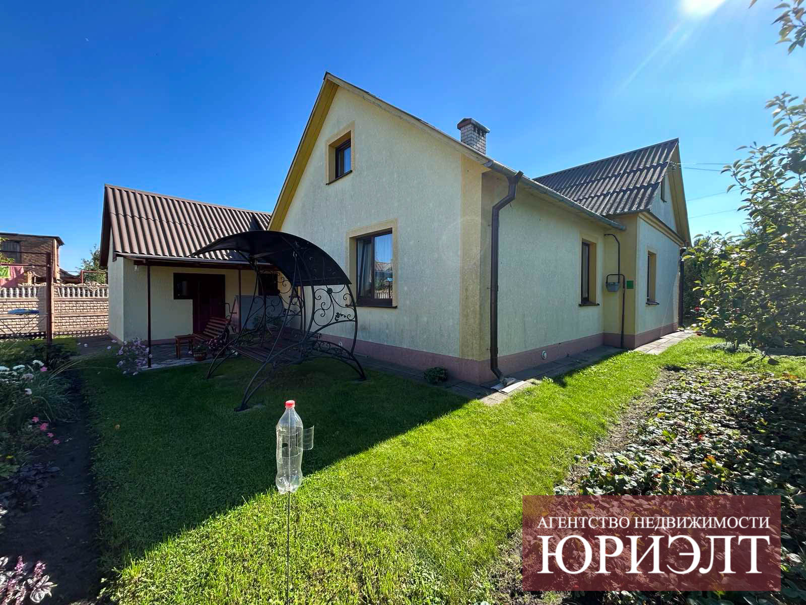 Участок - 0,06 га, огорожен со всех сторон, ровный и ухоженный. Газоны, дорожки, высажено много хвойных насаждений, большие туи.