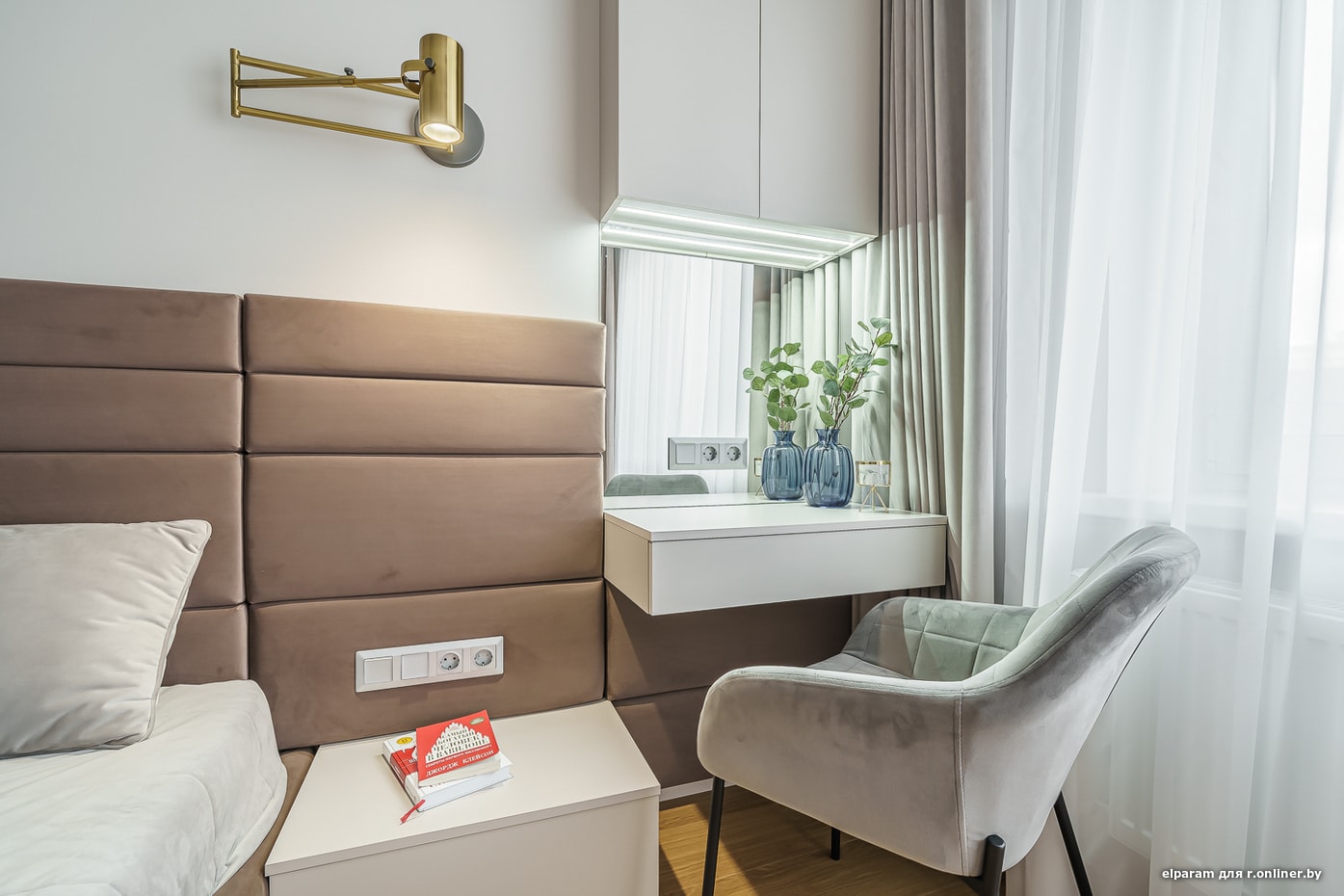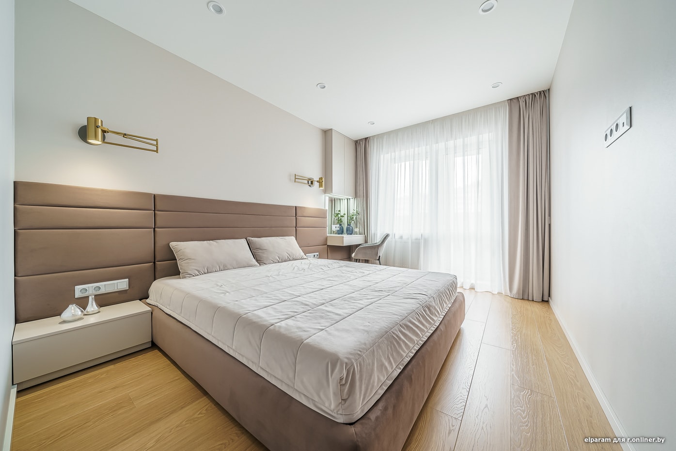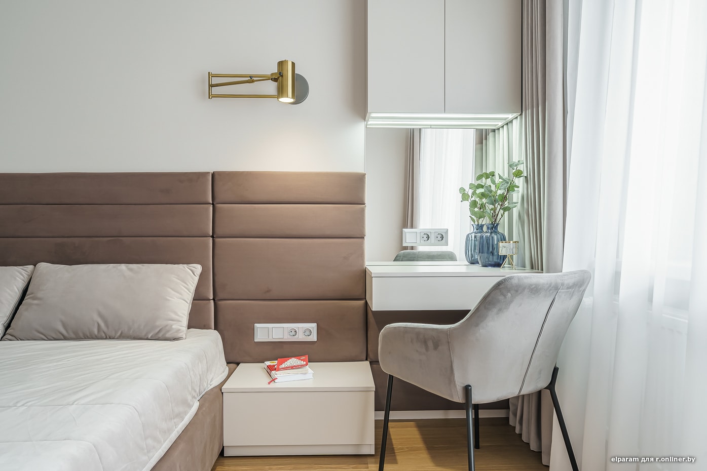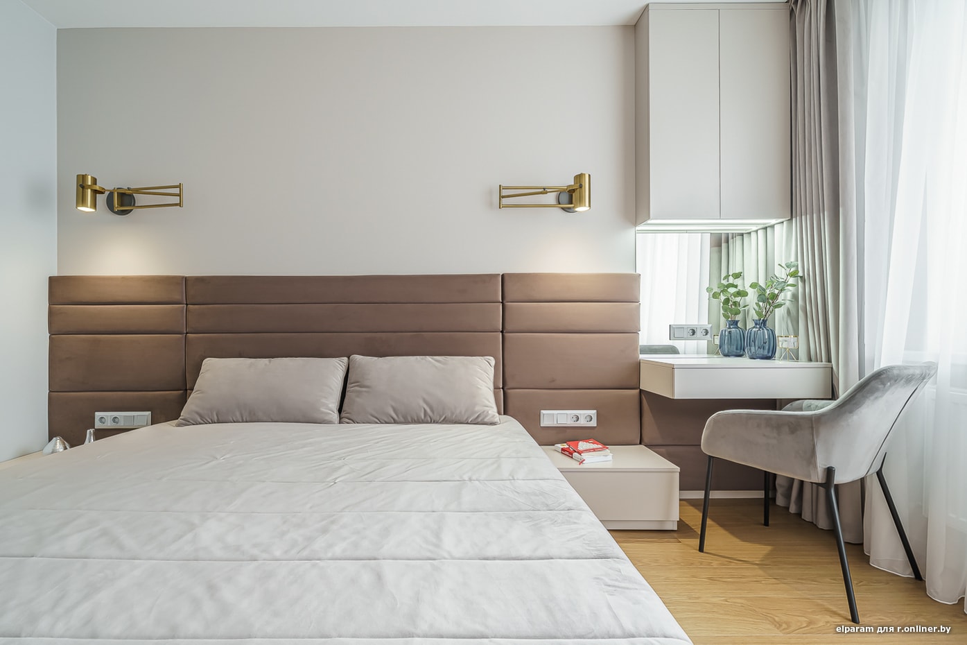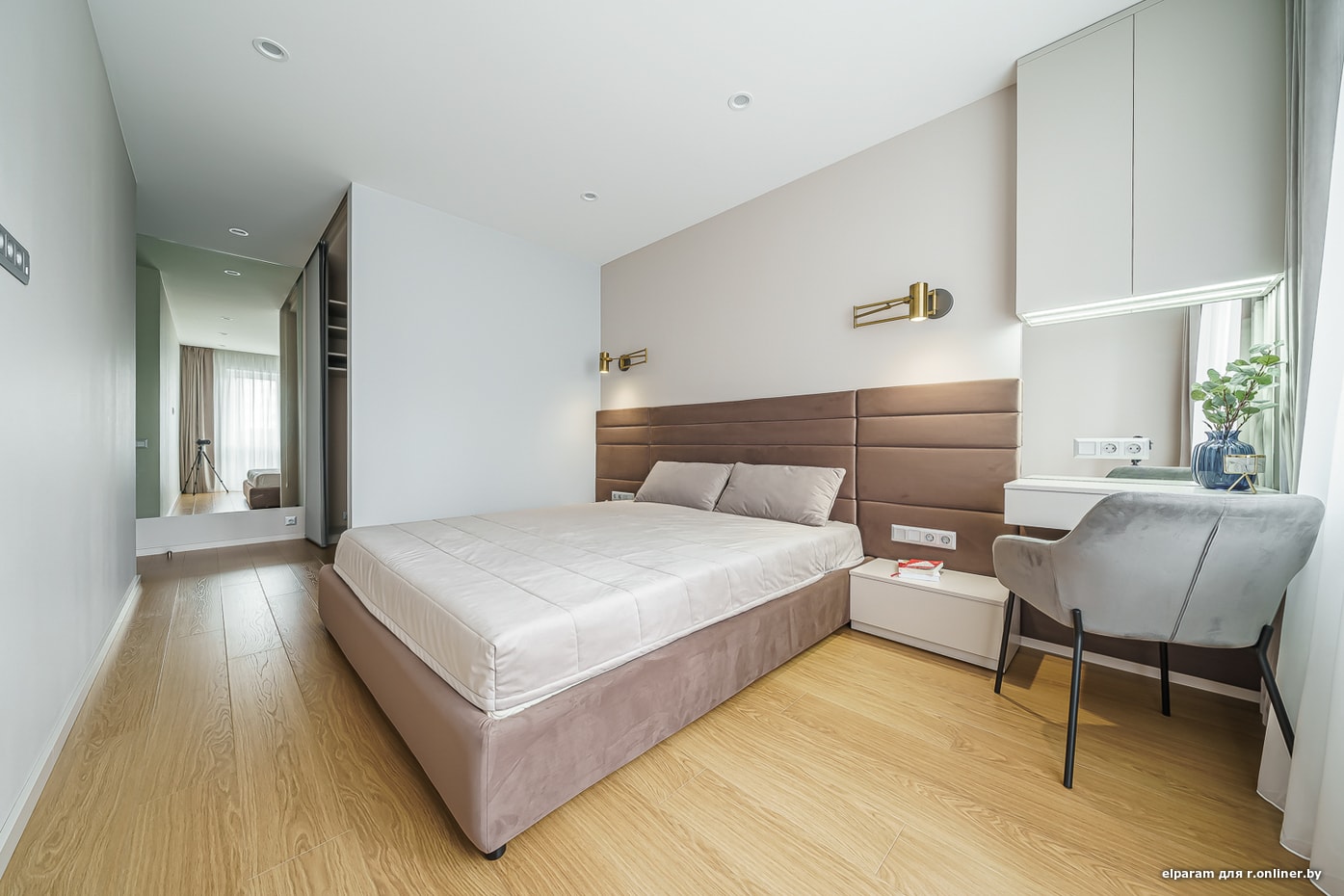 4. И последняя фишка, спальня хозяев с гардеробной комнатой, кроватью увеличенного размера (длина более двух метров) с итальянский memory-foam матрасом, и радостью любой девушки - столиком для макияжа.