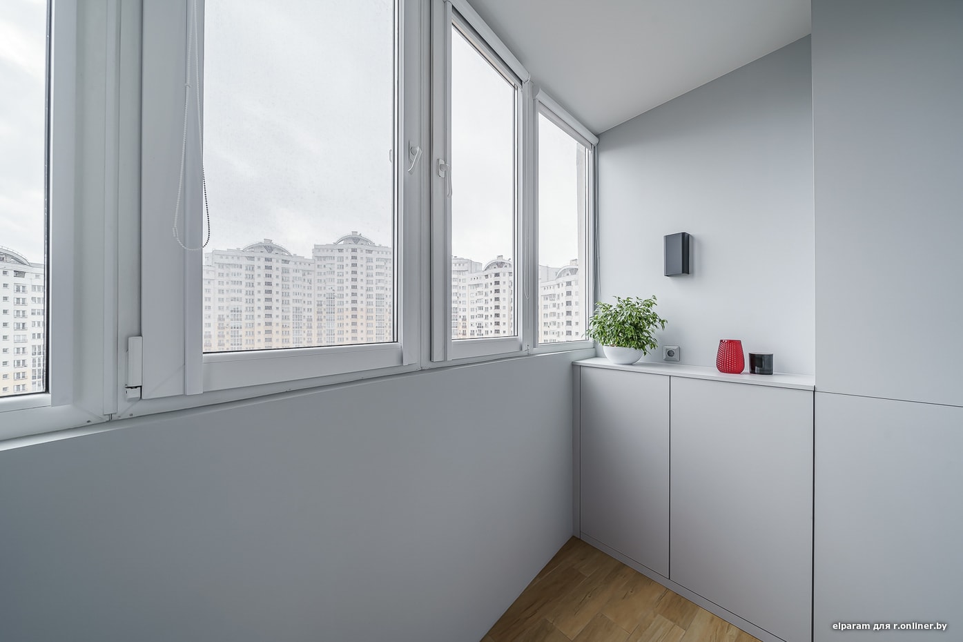 4.1 Из спальной комнаты есть выход на вторую лоджию с уймой шкафчиков и теплым полом, которую также можно использовать как место для отдыха и уединения.