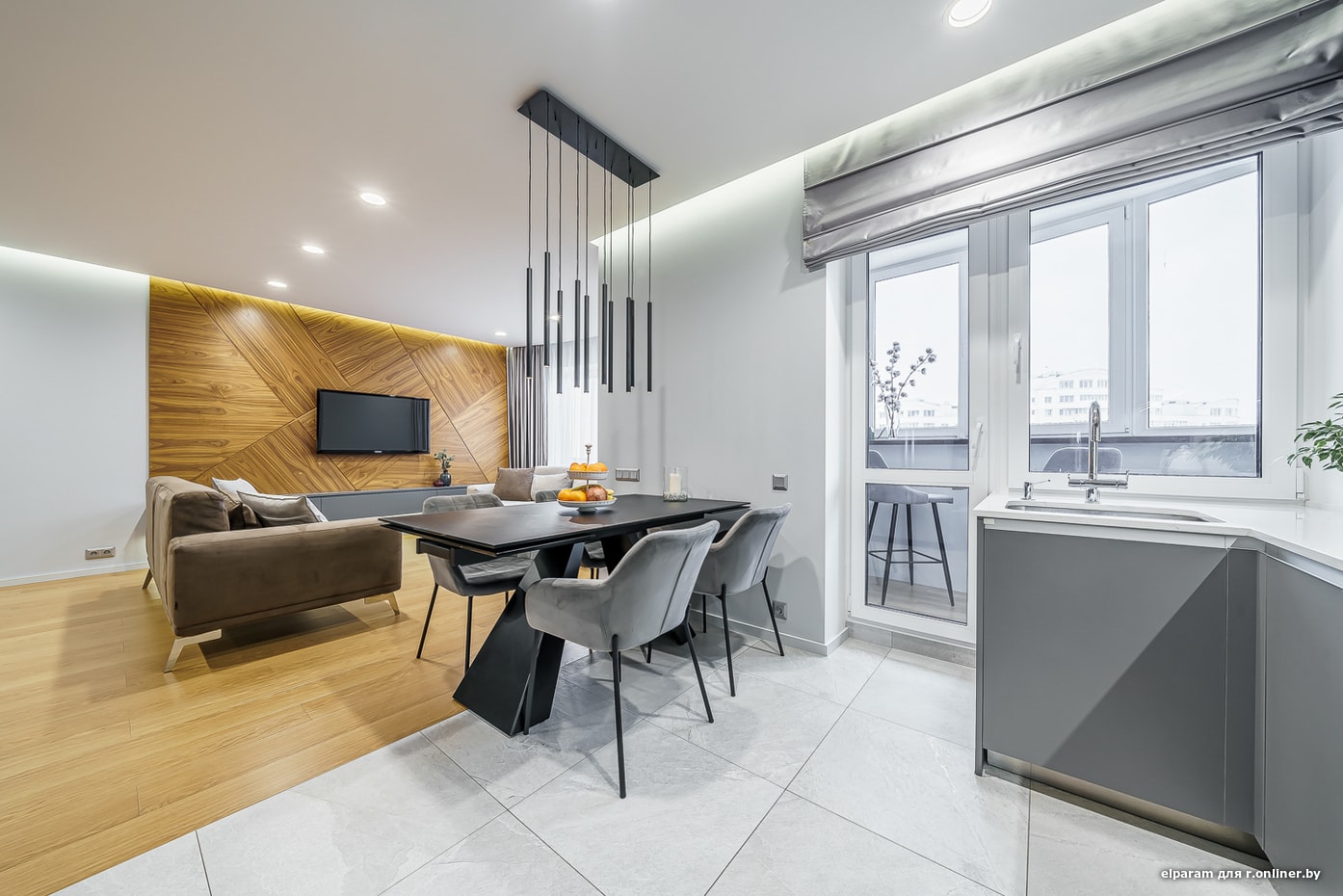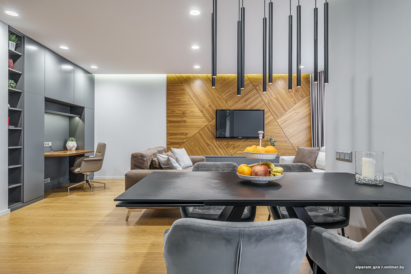 1.2 Обеденная зона, со столом-трансформером и мягкими креслами, всегда готова для ужина большой семьей или приема гостей;