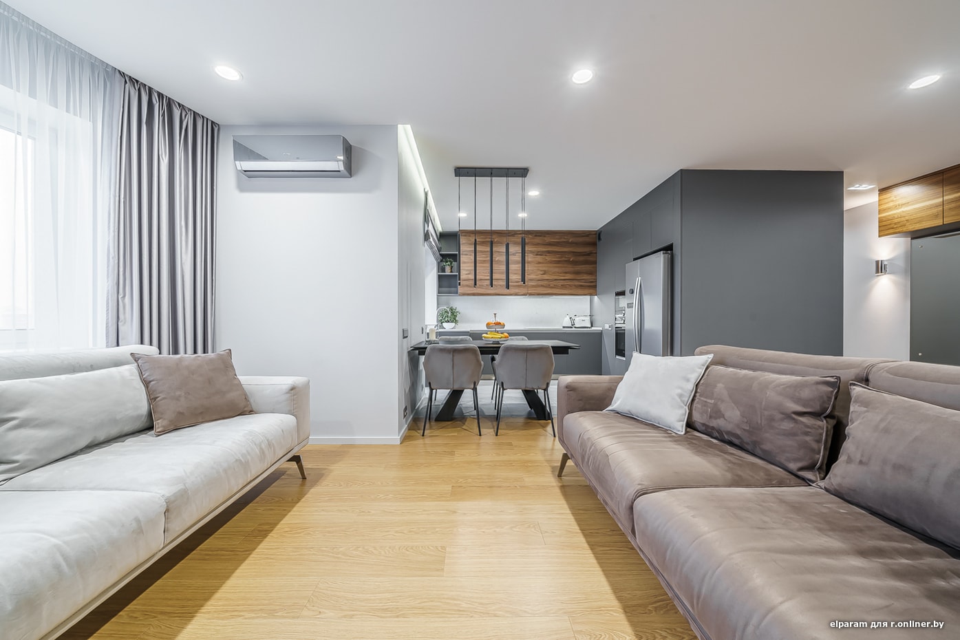 - Мощный кондиционер в гостиной, для охлаждения или обогрева квартиры