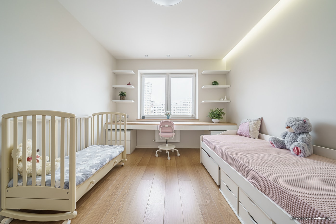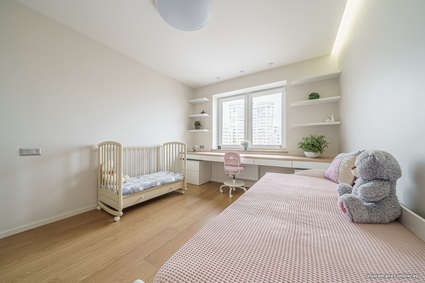 3. Детская комната или светлый кабинет, с широким и светлым столом, за которым удобно играть, рисовать или учиться. Также в комнате вам представлена кровать с итальянским беспружинным матрасом и встроенный шкаф с внутренним освещением.