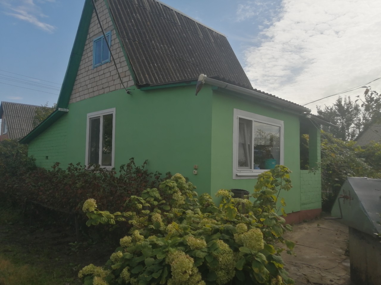 Участок с домом 6,1 соток, ровный, плодовые деревья и кустарники. Есть колодец со вкусной водой, скважина с водой для полива, две теплицы из поликарбоната (6 и 8 м2).
