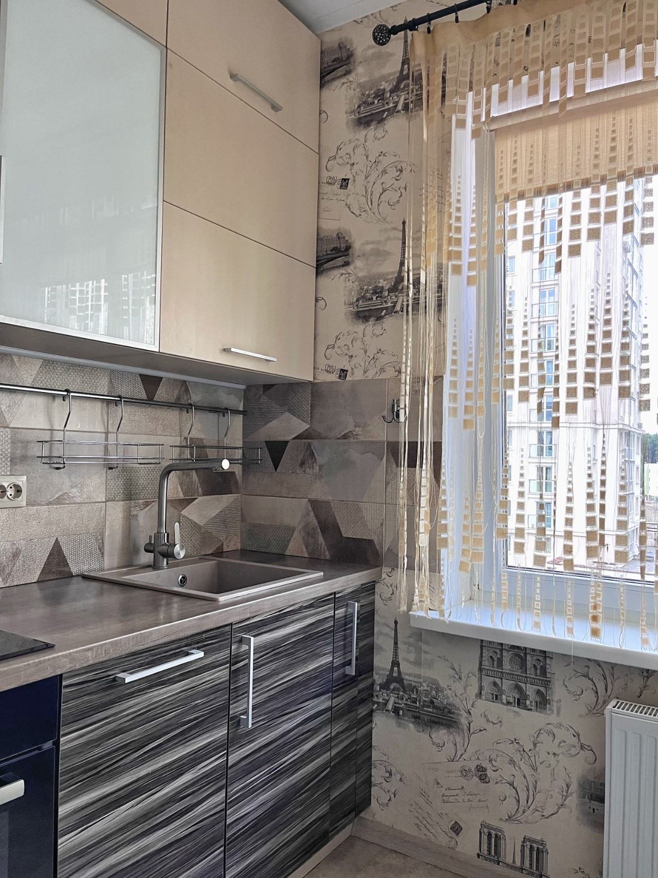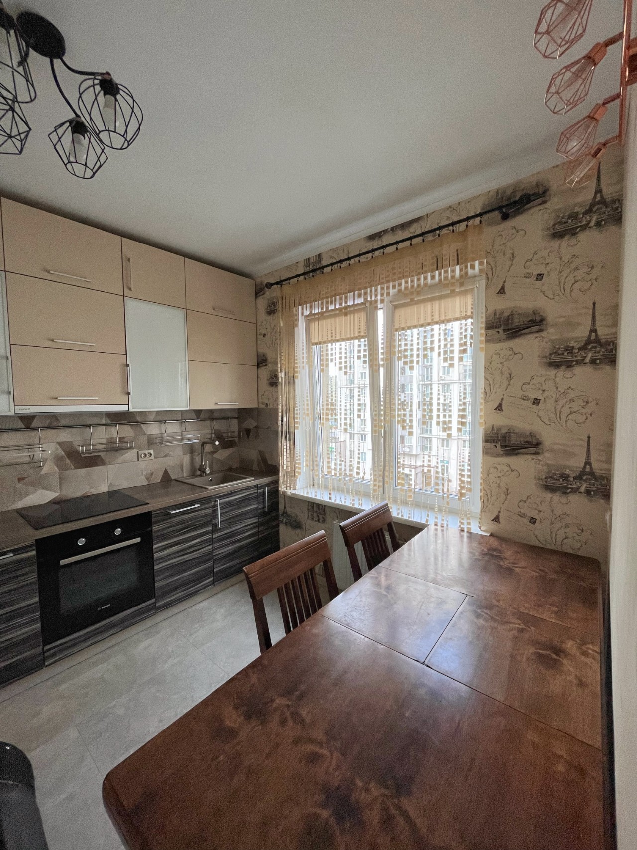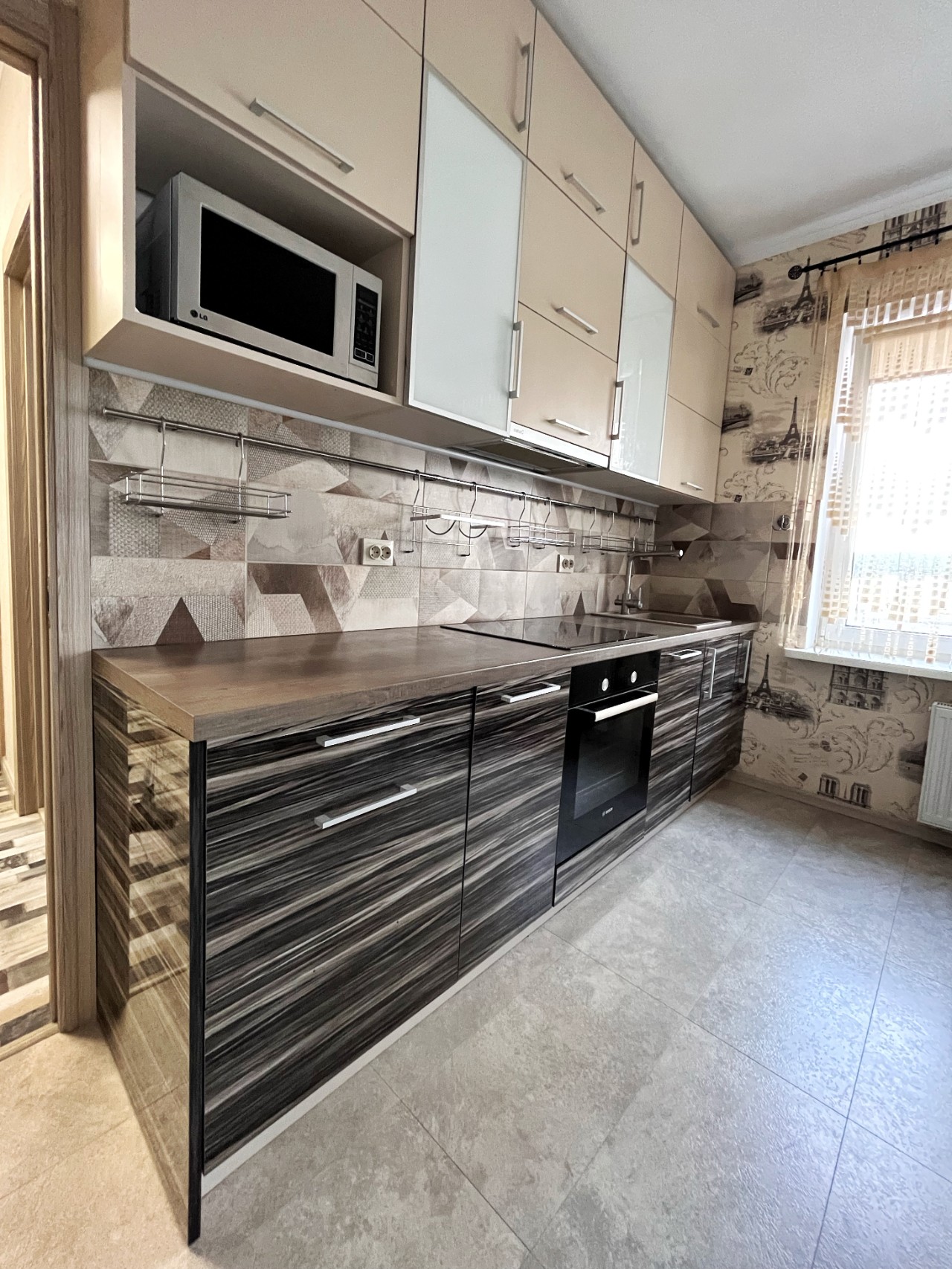 Квартира полностью укомплектована техникой: посудомоечная машина, холодильник, стиральная машина с сушилкой, индукционная варочная панель, духовой шкаф, вытяжка, микроволновая печь, телевизор.