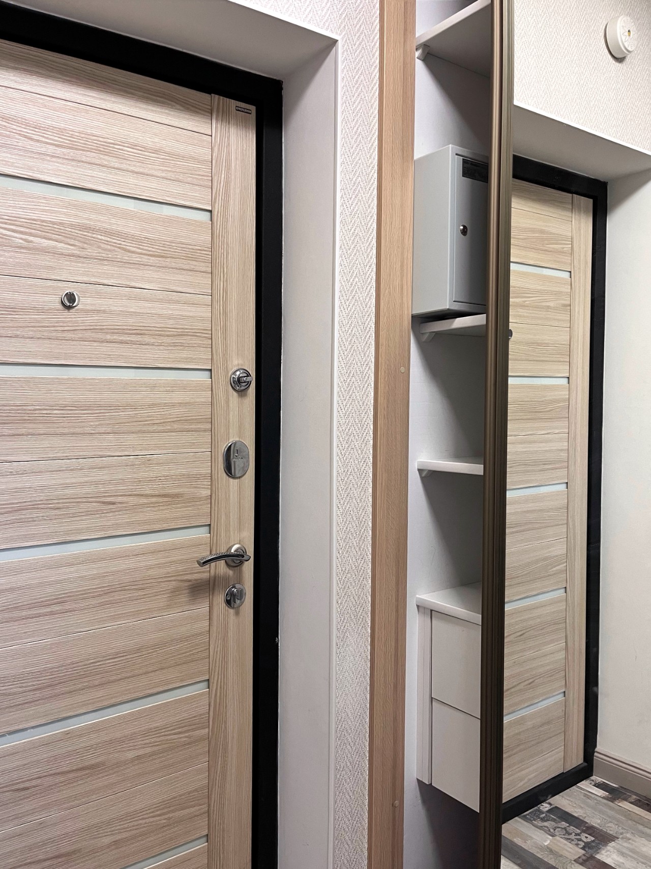 В ванной комнате установлен накопительный водонагреватель Thermex (на случай планового отключения горячей воды летом). На полу уложен ламинат, в ванной - плитка.