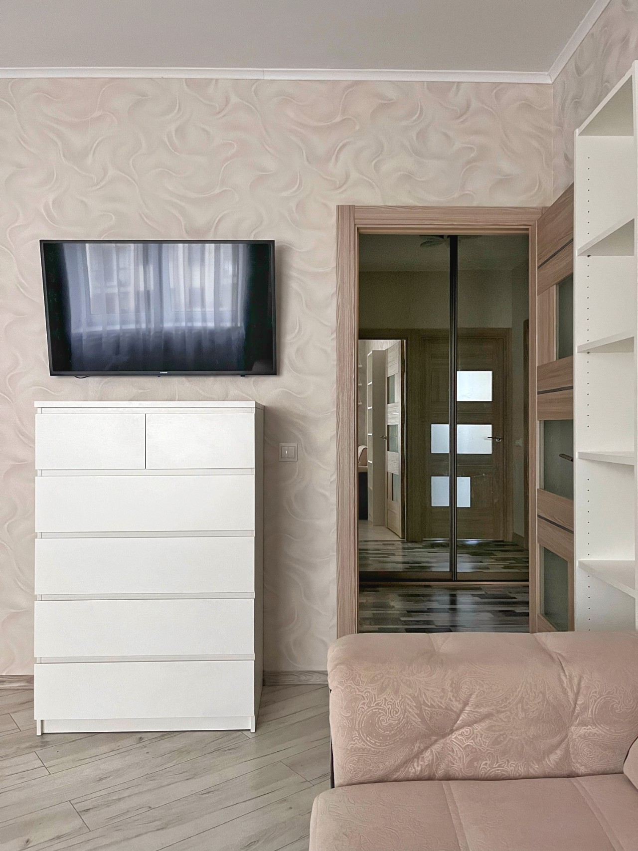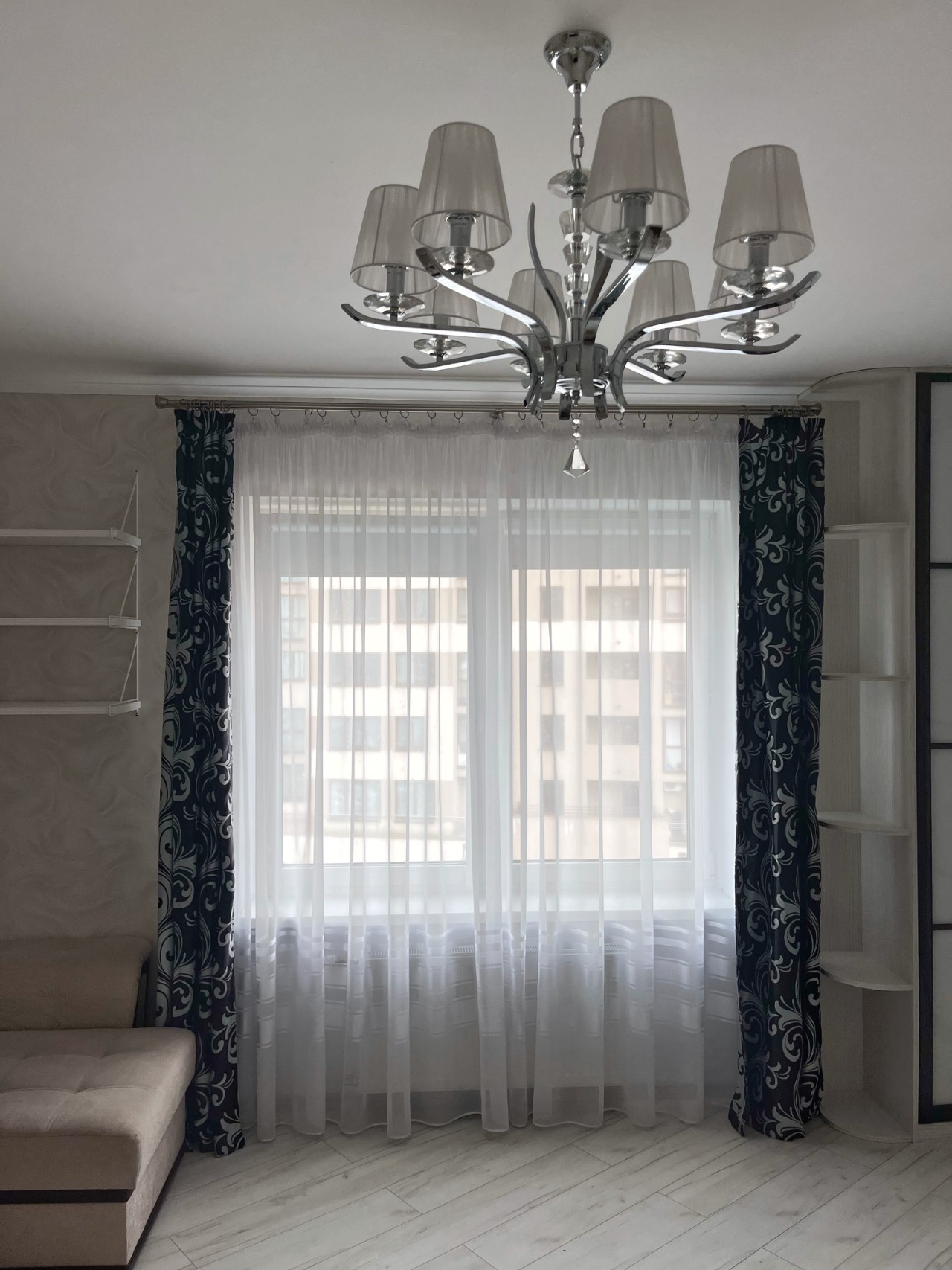 Блэкаут роль шторы в спальне-гостиной.