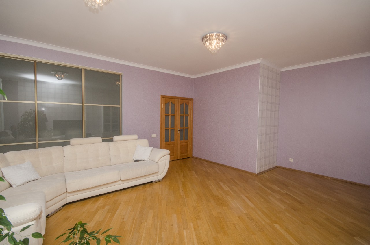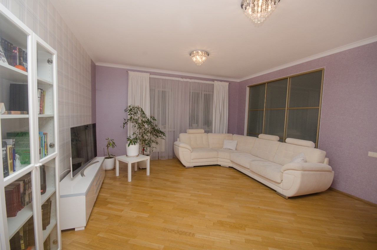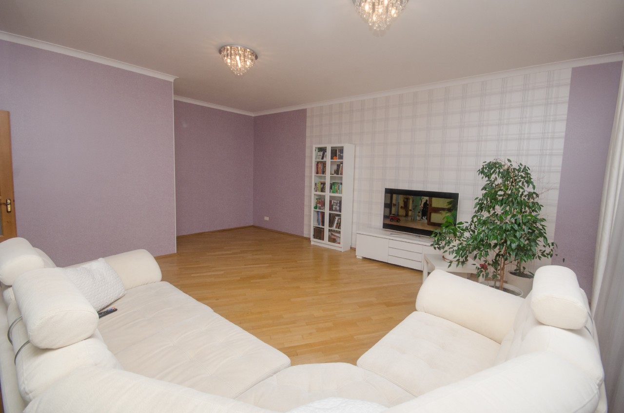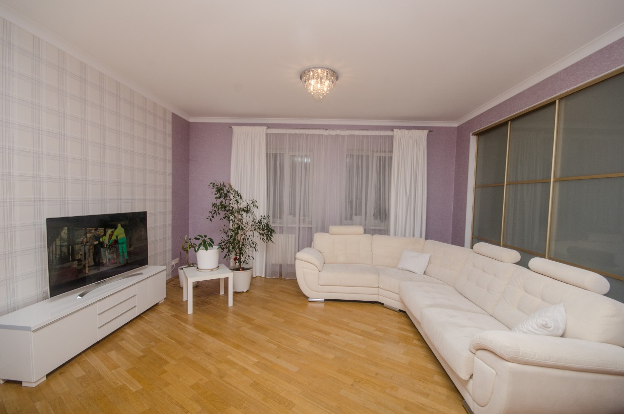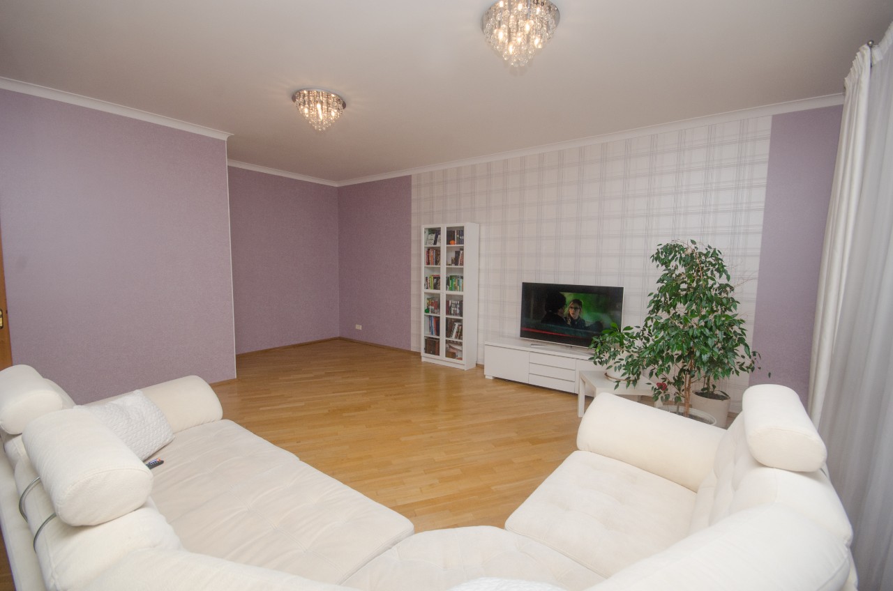 В квартире остаётся вся мебель и техника! Площадь по СНБ 120 кв.м, кухня 12,3 м.кв, +- гостиная 34,3м.кв, 2 спальни, 2 санузла, гардеробная, огромная утепленная лоджия.Просторная квартира с большими окнами и современным ремонтом.