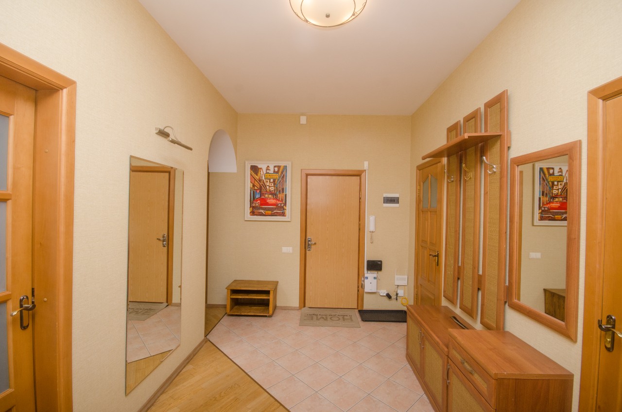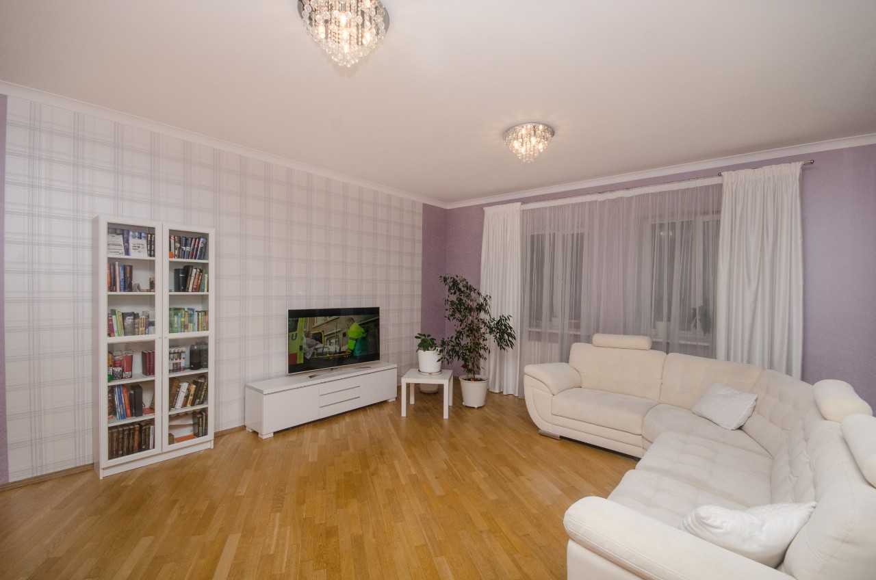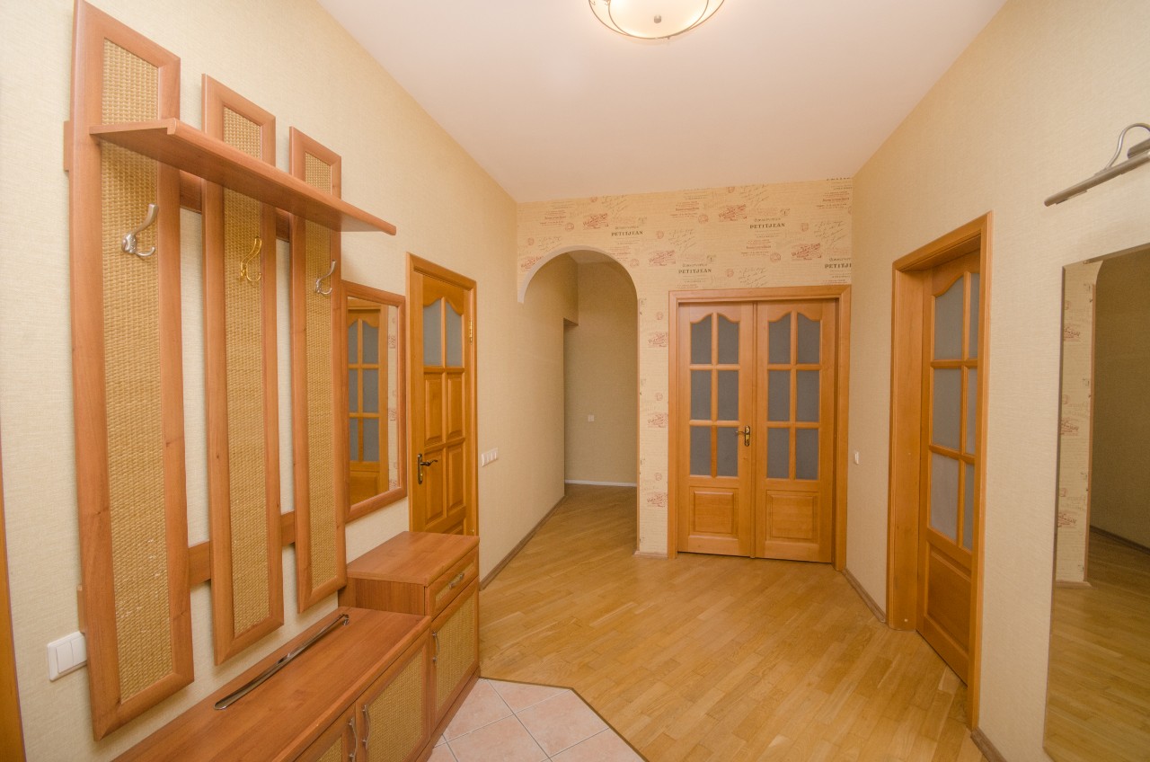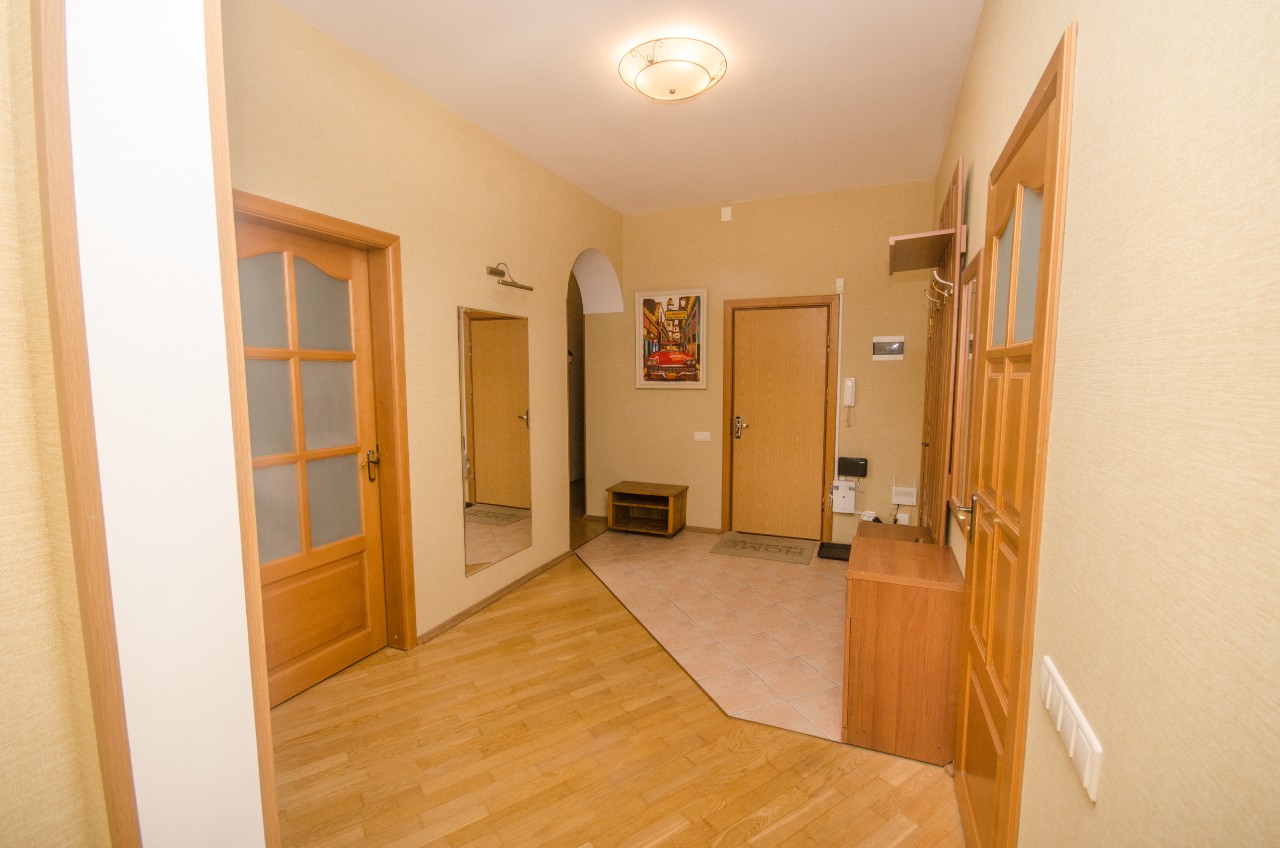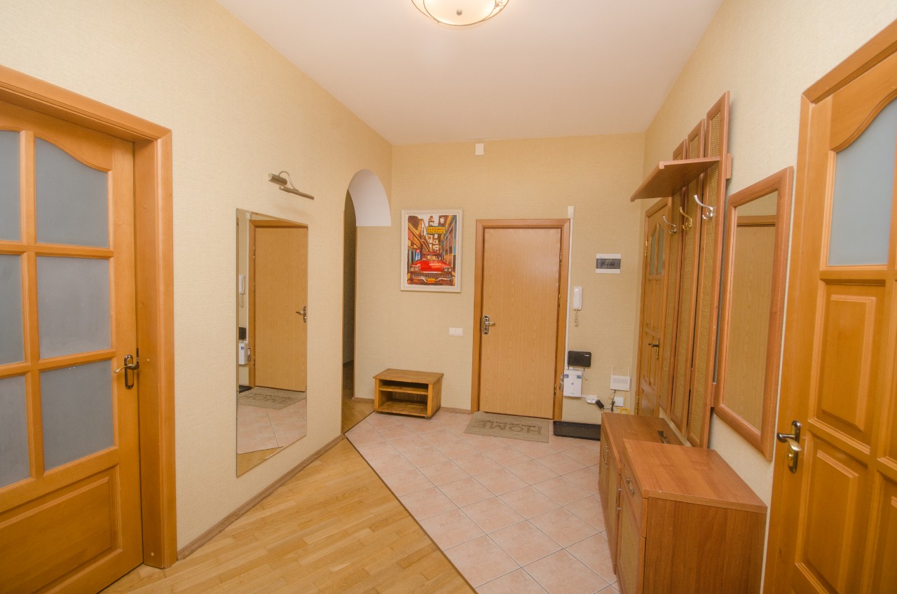 В квартире остаётся вся мебель и техника! Площадь по СНБ 120 кв.м, кухня 12,3 м.кв, +- гостиная 34,3м.кв, 2 спальни, 2 санузла, гардеробная, огромная утепленная лоджия.Просторная квартира с большими окнами и современным ремонтом.