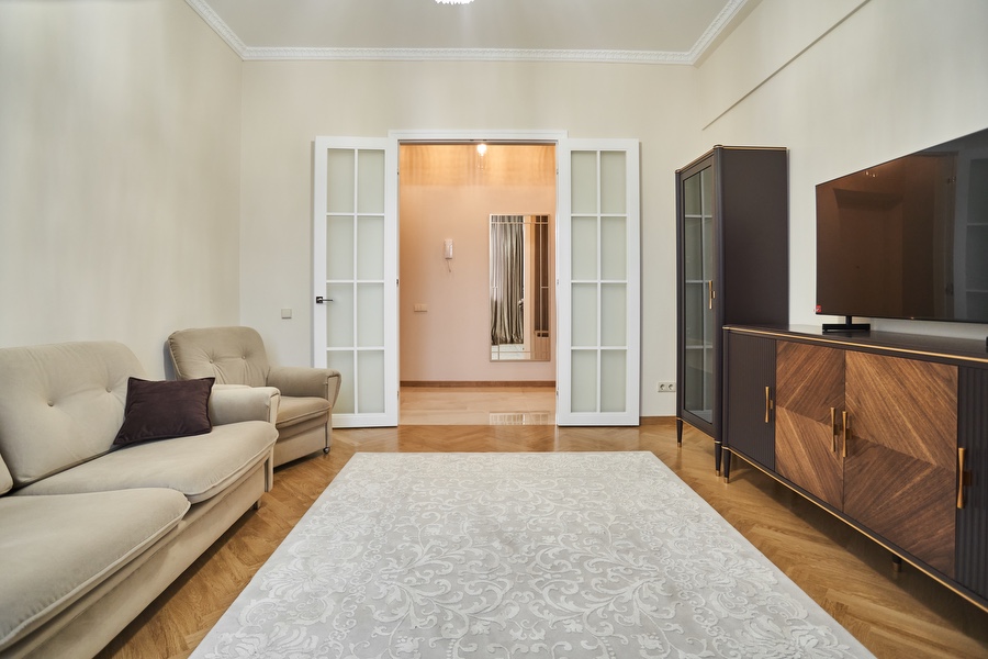 Дом оснащен лифтом, а заезд во двор осуществляется через шлагбаум. Всегда есть свободное парковочное место. Рядом находятся бассейн и теннисные корты, а также городской парк - все это в шаговой доступности. Не упустите возможность стать жильцом этой эксклюзивной квартиры в самом сердце столицы!