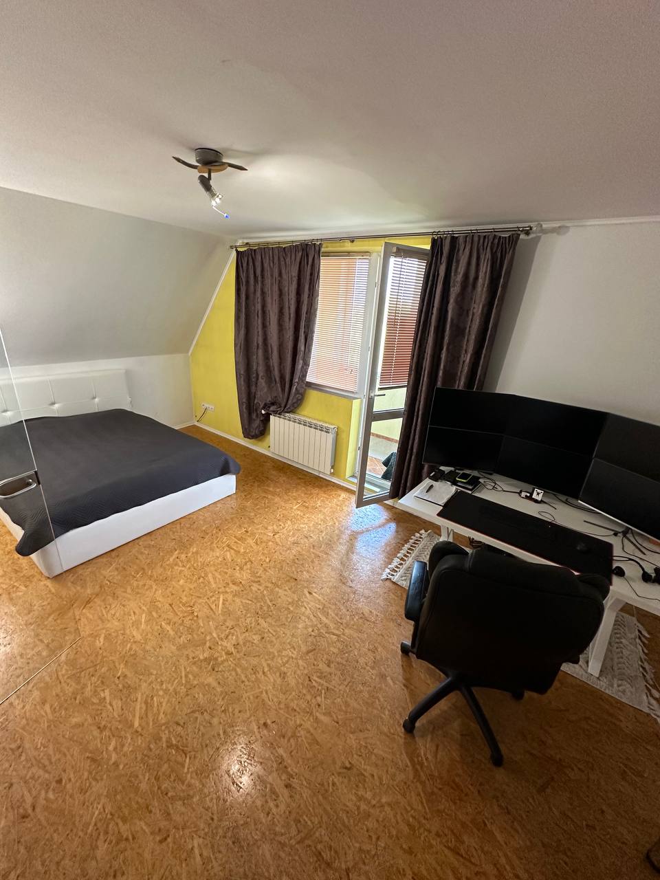 Двухуровневая четырехкомнатная квартира повышенной комфортности на верхних этажах 5-этажного кирпичного дома с мансардой 2005 года постройки в юго-восточном микрорайоне. Установлены стеклопакеты, из окон открывается вид на зеленую зону двора. Входная дверь – металлическая, межкомнатные – МДФ. Общая площадь 109,1 кв.м, жилая 73,2 кв.м. Улучшенная просторная планировка, в размещении комнат прослеживается функциональность. По плану на первом этаже гостиная 26,9 кв.м. объединена с кухней 8,9 кв.м, совмещенный санузел; в мансарде – приватное пространство, состоящее из трех спален, расположенных по разным сторонам дома, из большой спальной комнаты 21,2 кв.м. есть выход на застекленную лоджию с кладовкой, ванная комната и лестничный холл.