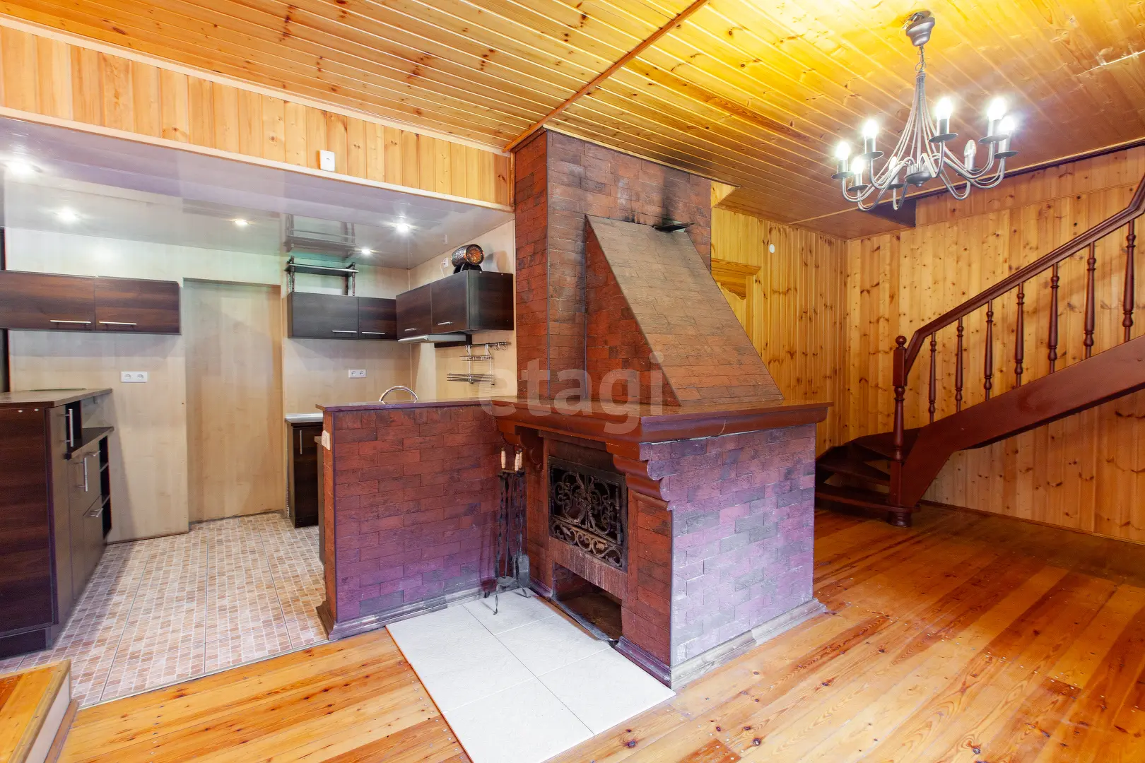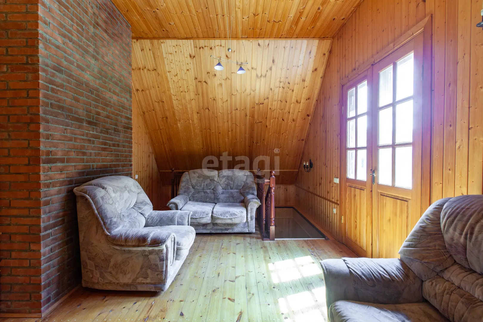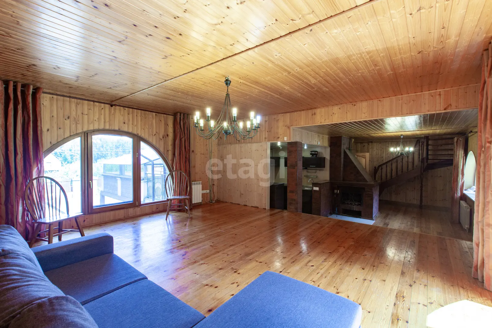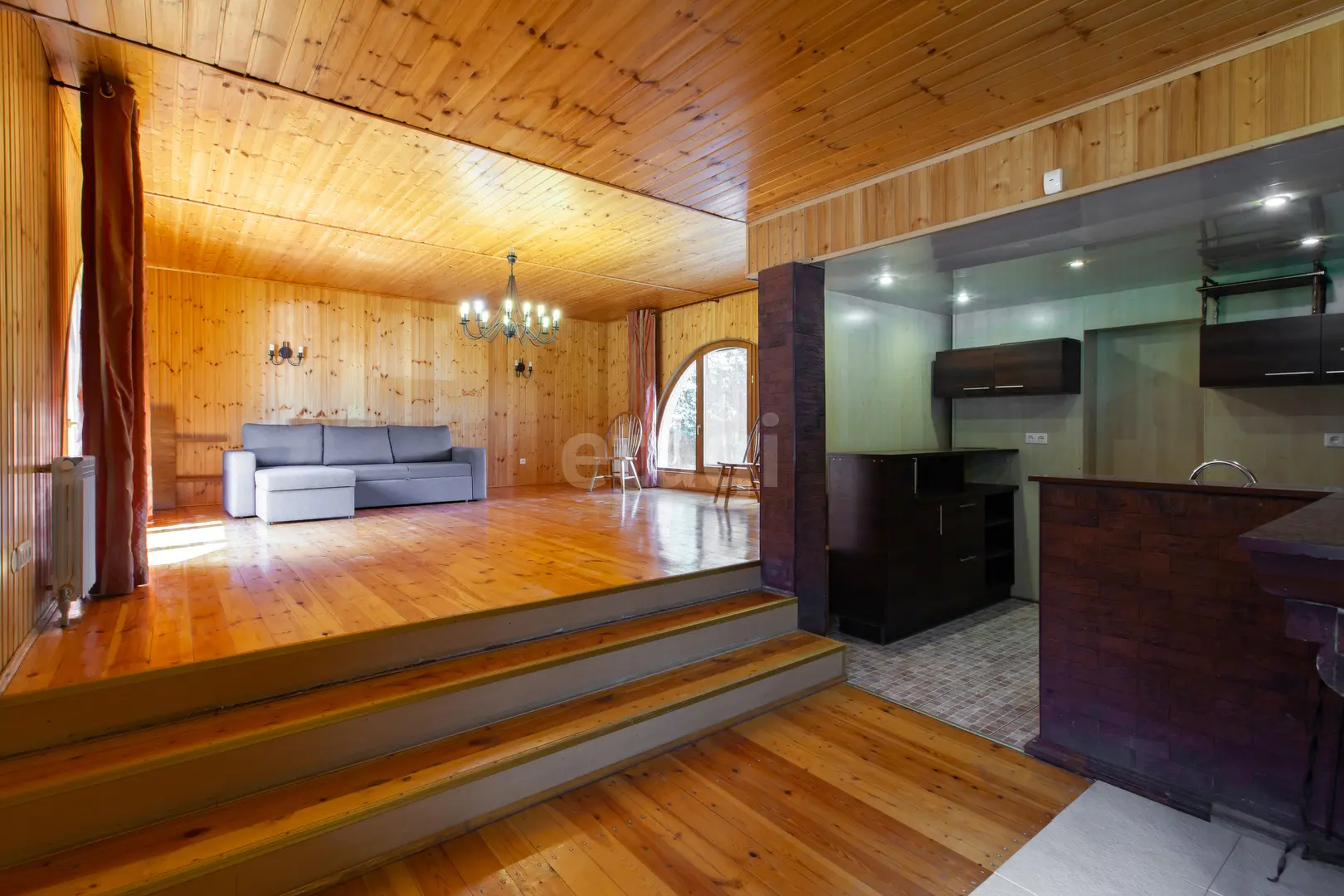 3-х этажный дом общей площадью 300 м.кв., В гостиной 51 м.кв. есть камин, стены обшиты вагонкой, из окон открывается прекрасный вид. Кухне 6.3 м.кв., оборудована кухонным гарнитуром, электроплита. На мансардном этаже имеются комнаты 18.6 м.кв. , 22.1 м.кв. и 23.1 м.кв. . Комнаты полностью обшиты вагонкой.