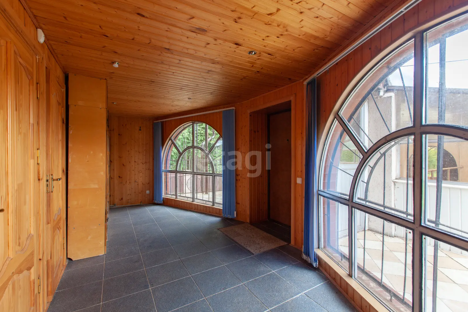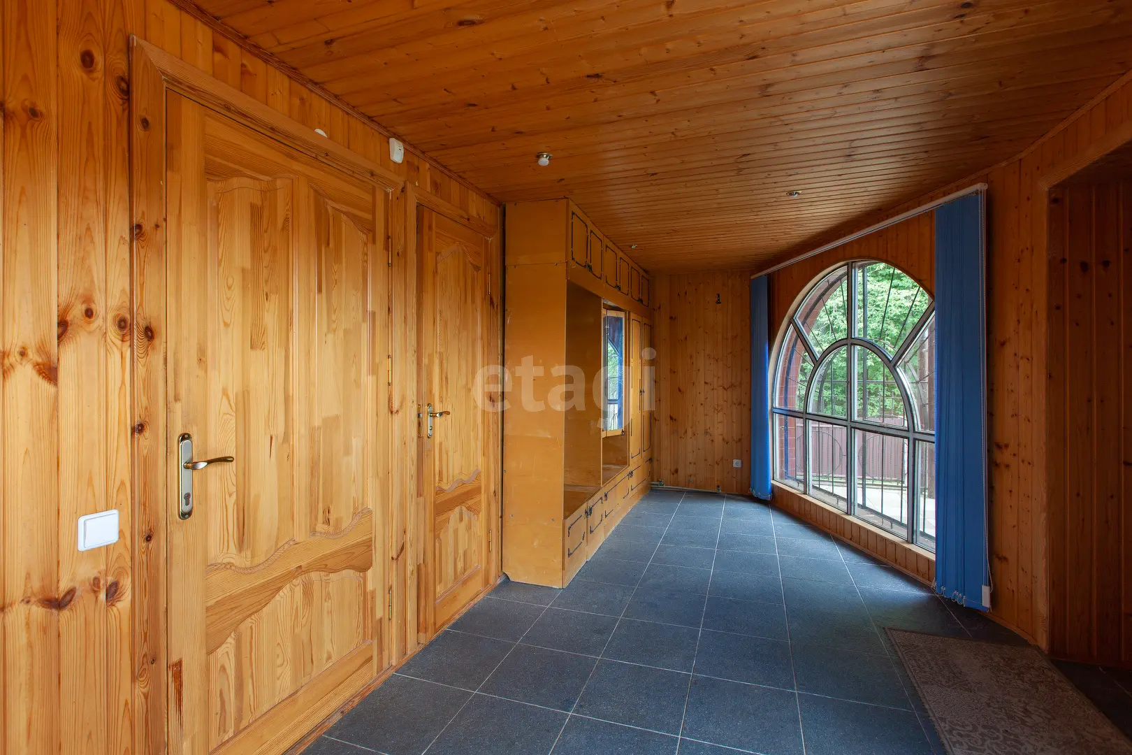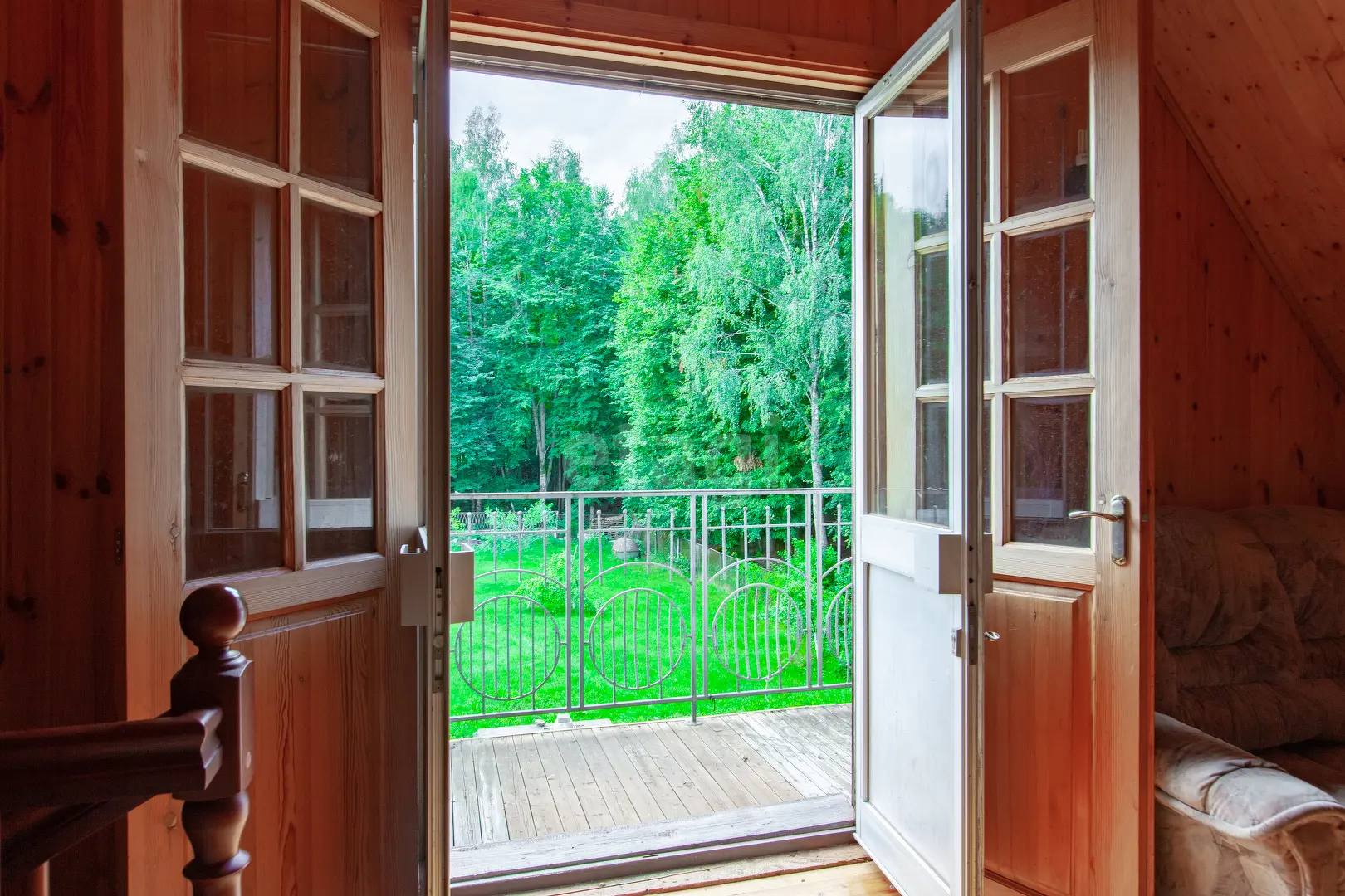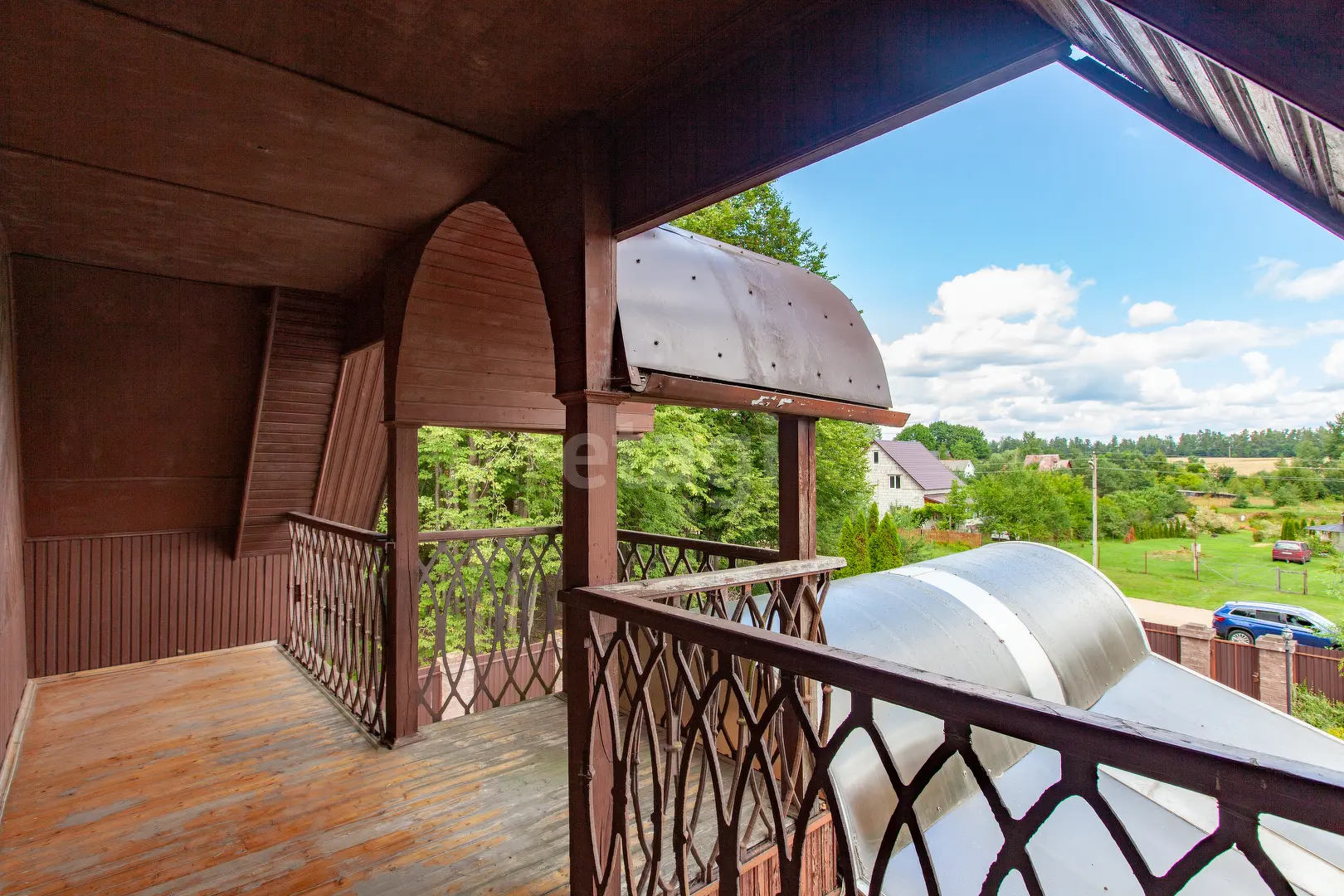 3-х этажный дом общей площадью 300 м.кв., В гостиной 51 м.кв. есть камин, стены обшиты вагонкой, из окон открывается прекрасный вид. Кухне 6.3 м.кв., оборудована кухонным гарнитуром, электроплита. На мансардном этаже имеются комнаты 18.6 м.кв. , 22.1 м.кв. и 23.1 м.кв. . Комнаты полностью обшиты вагонкой.
